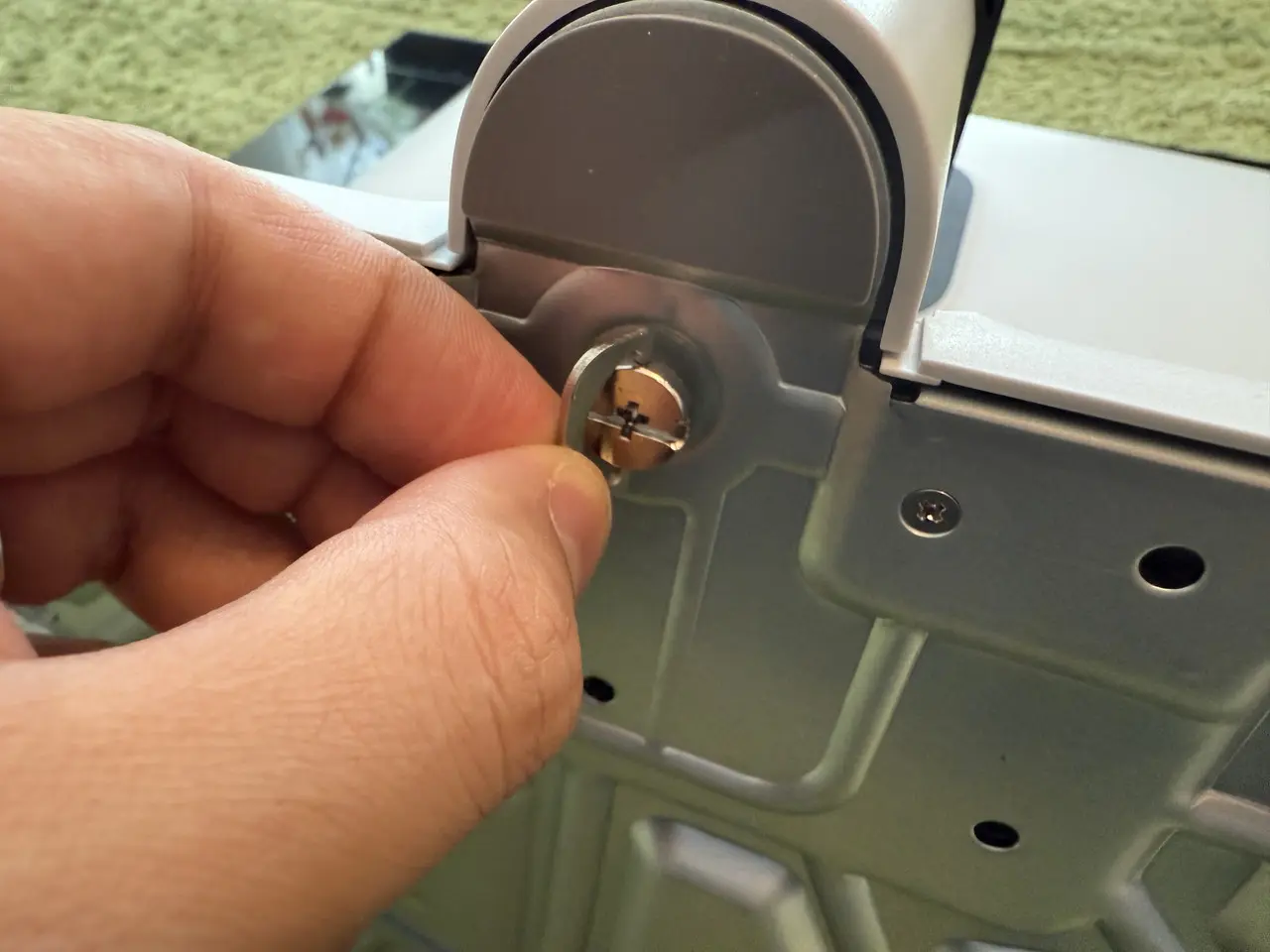 ▼固定用のネジは、素手でも簡単に締めることが可能。