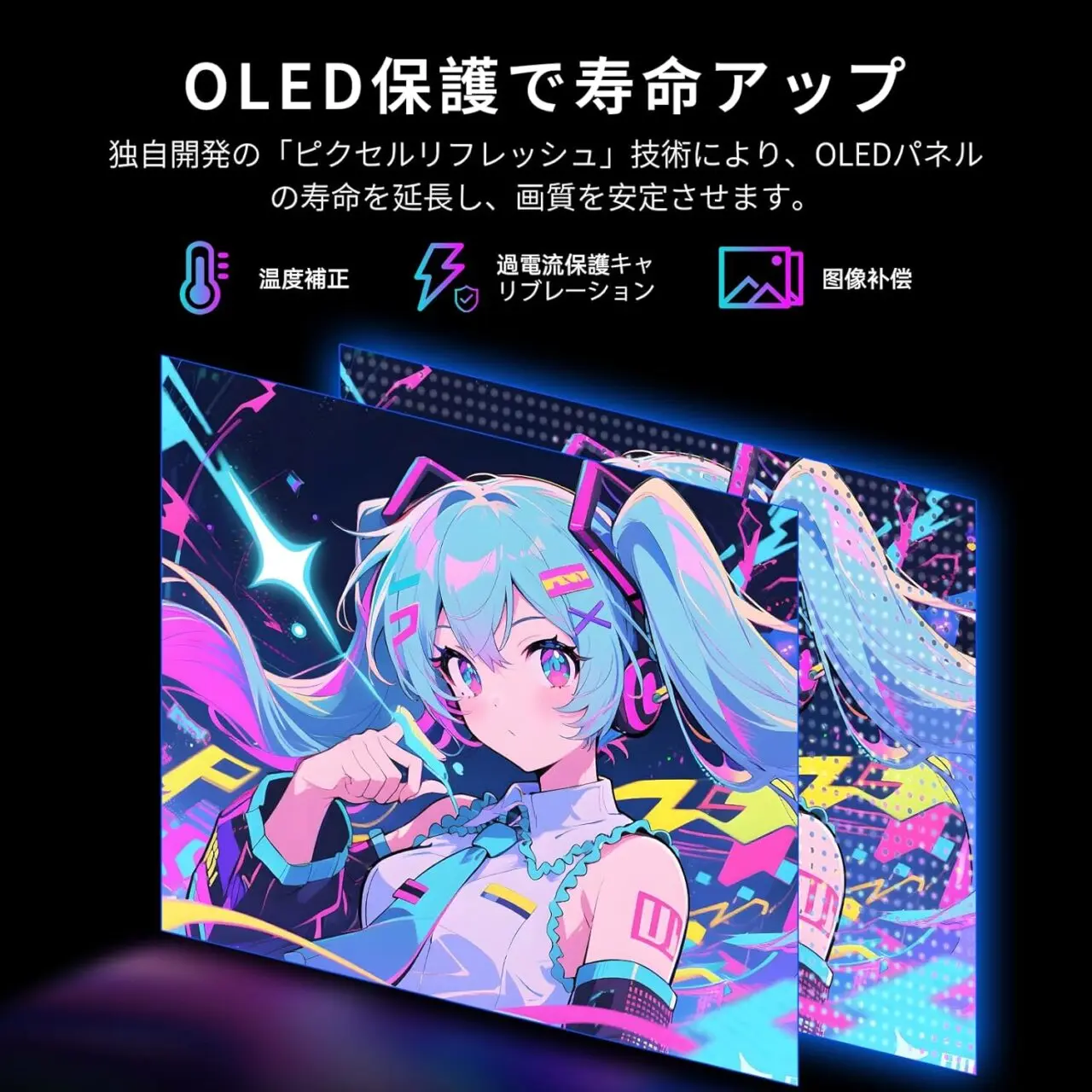 ▼独自技術「ピクセルリフレッシュ」技術により、OLEDパネル寿命の延長に成功。