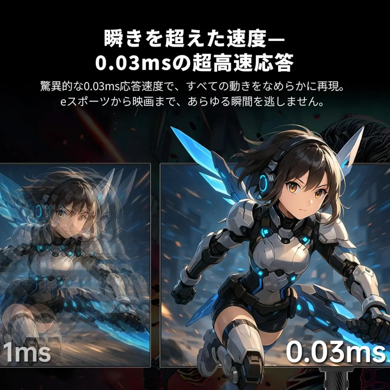 - 応答速度0.03ms(GtG)の超高速表示