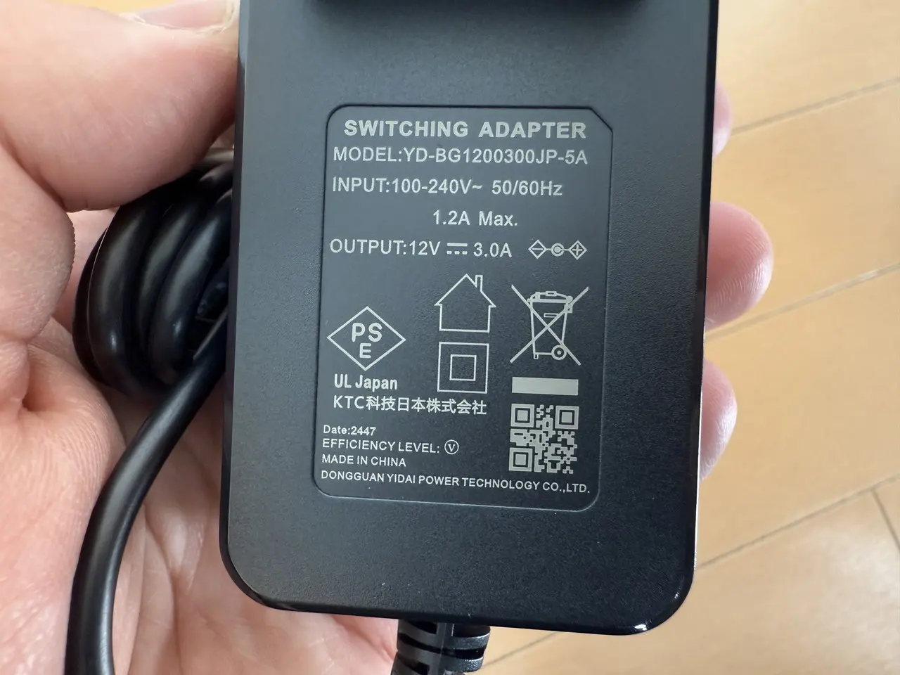 ▼電源アダプタは比較的コンパクトなサイズ。