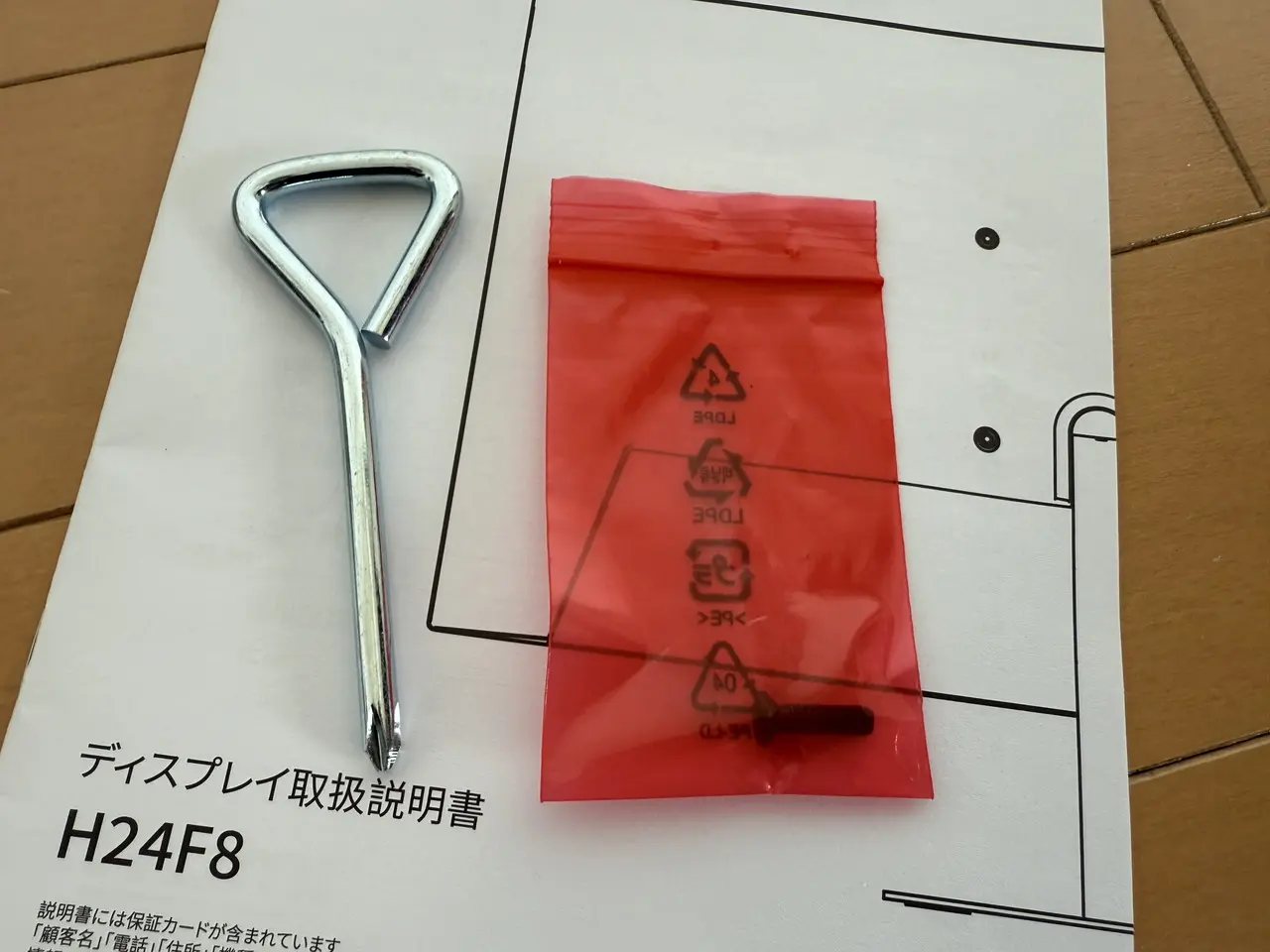 ▼ベースとモニターを固定するためのネジ&ドライバーが付属。ドライバーを別途用意する必要がない点は嬉しい。