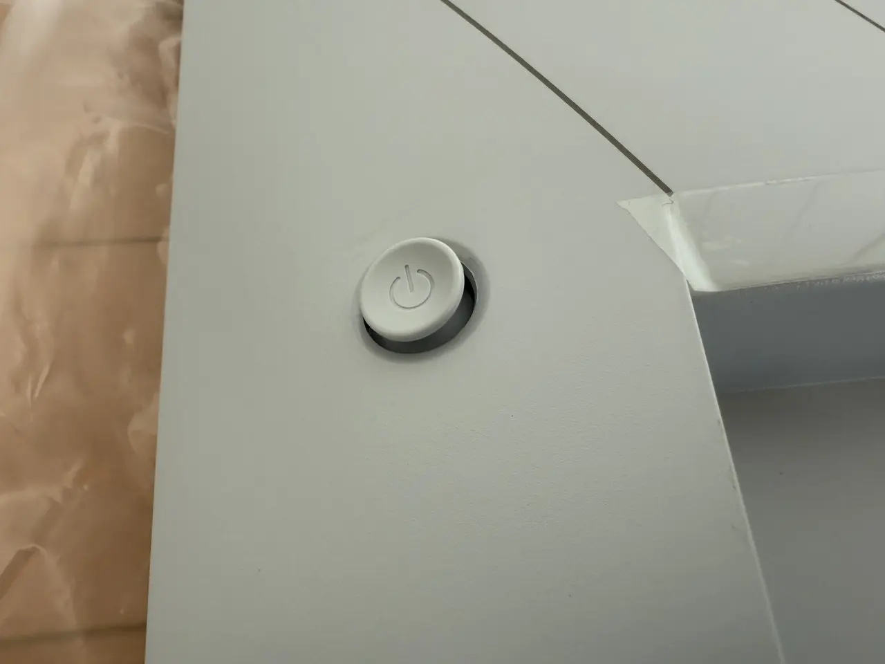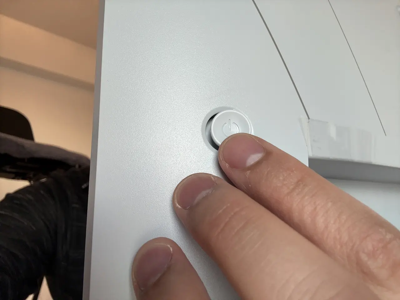 ▼正面から手を伸ばして指で押しやすいよう、電源ボタンには若干の角度が付けられている。従来モデルからの改善点の一つだ。