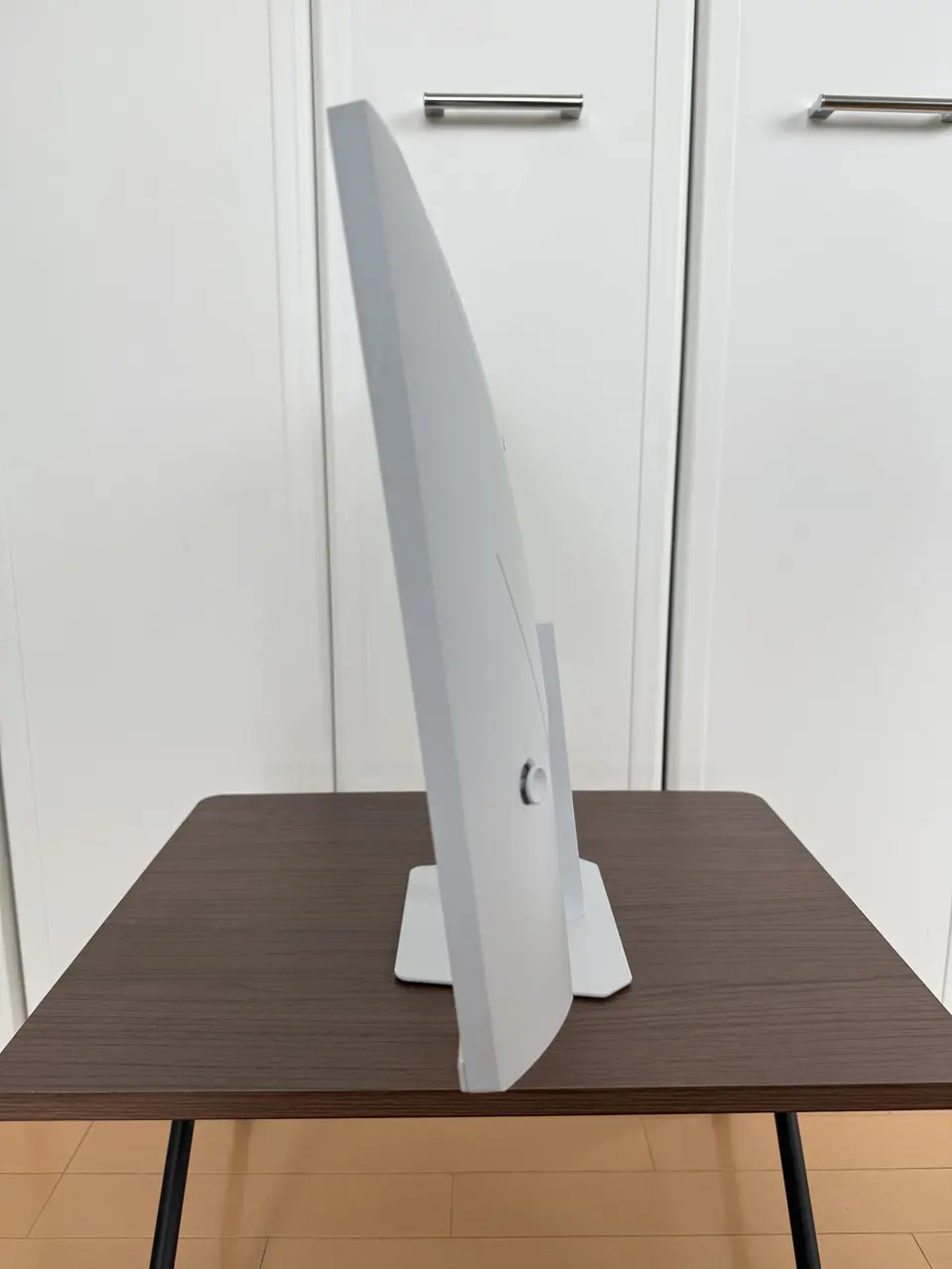 ▼スタンド部分はモニターと一体化しており、取り外し不可。
