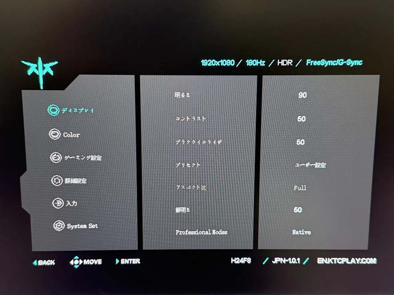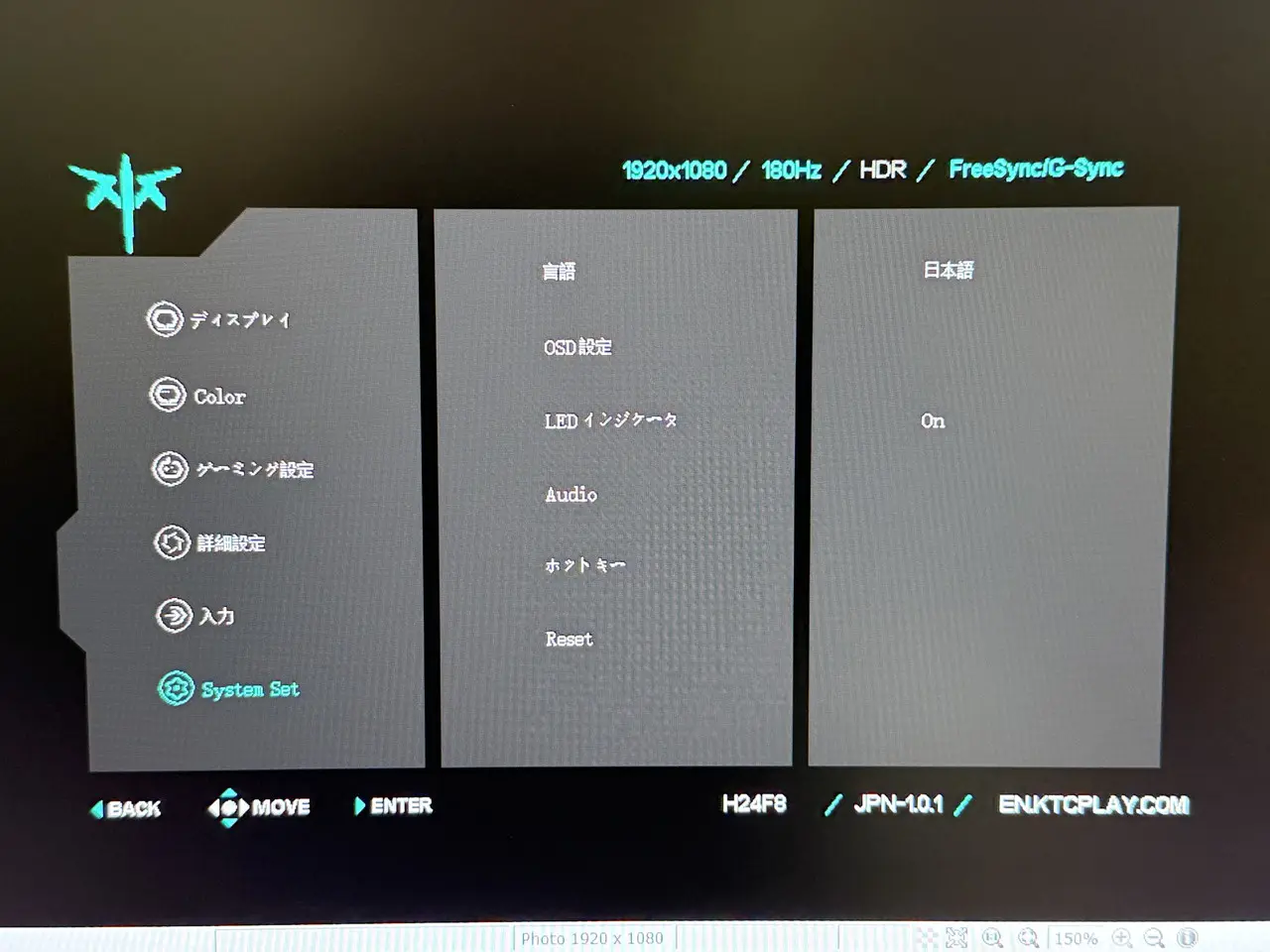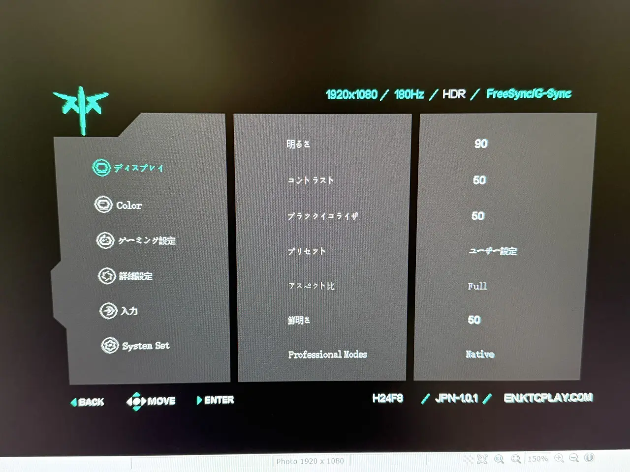 ▼ディスプレイの表示情報。180Hzのリフレッシュレートに対応。