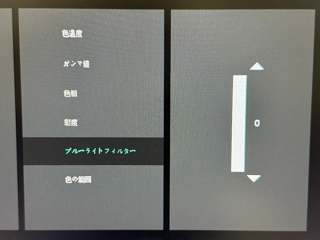 ▼ブルーライトフィルターも用意。長時間の作業やゲーミング時に目の疲れを軽減する。