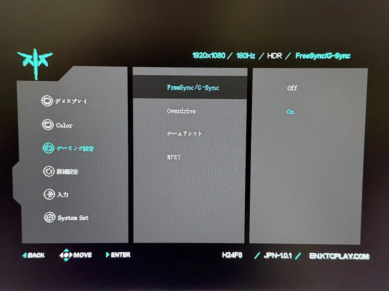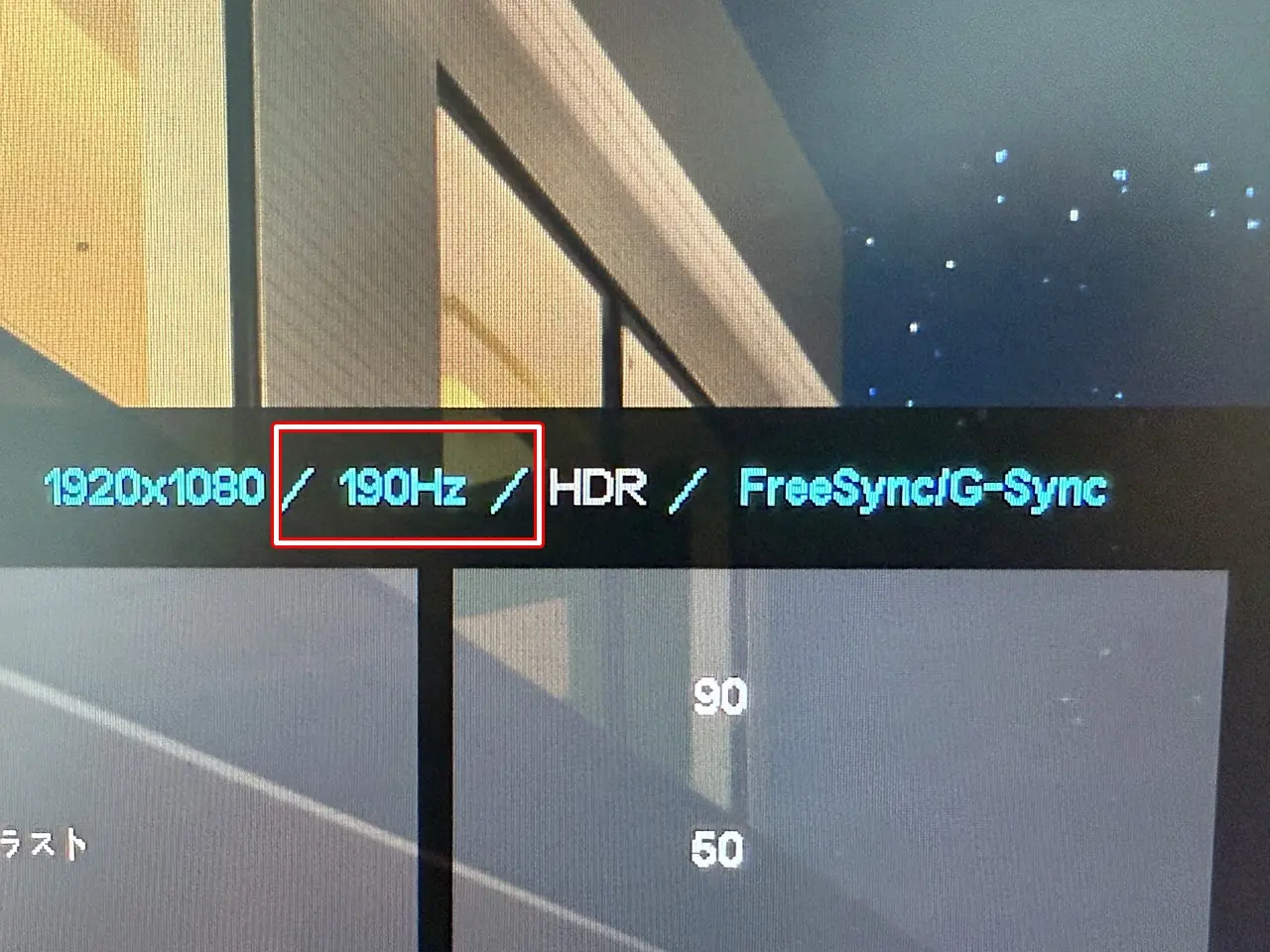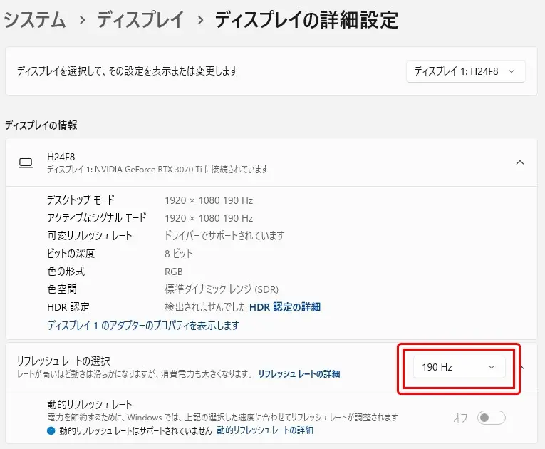 また、後述するモニター設定画面より "オーバークロック(OC)" をオンにした場合、最高190Hzのリフレッシュレートの描画が可能となる。