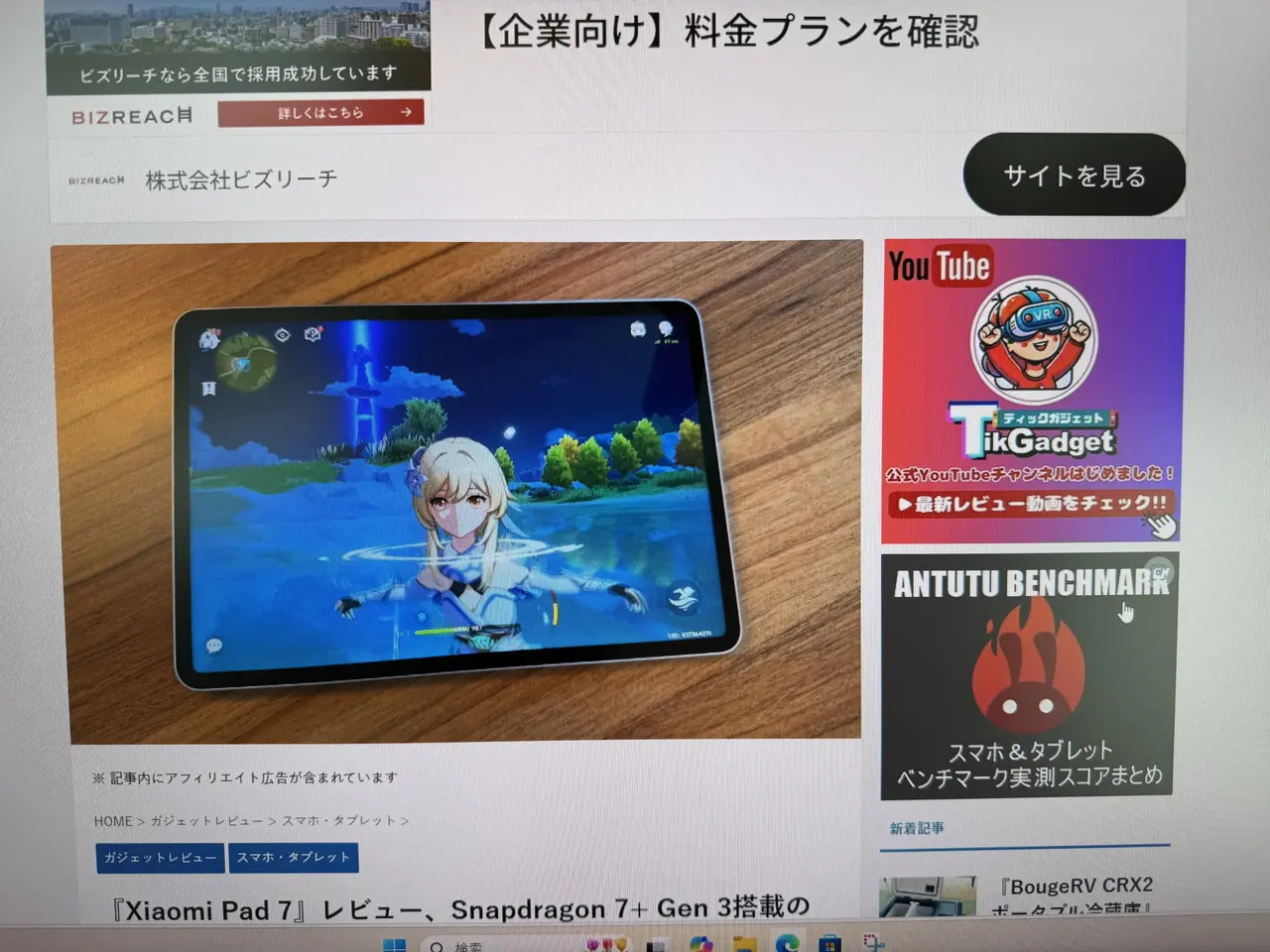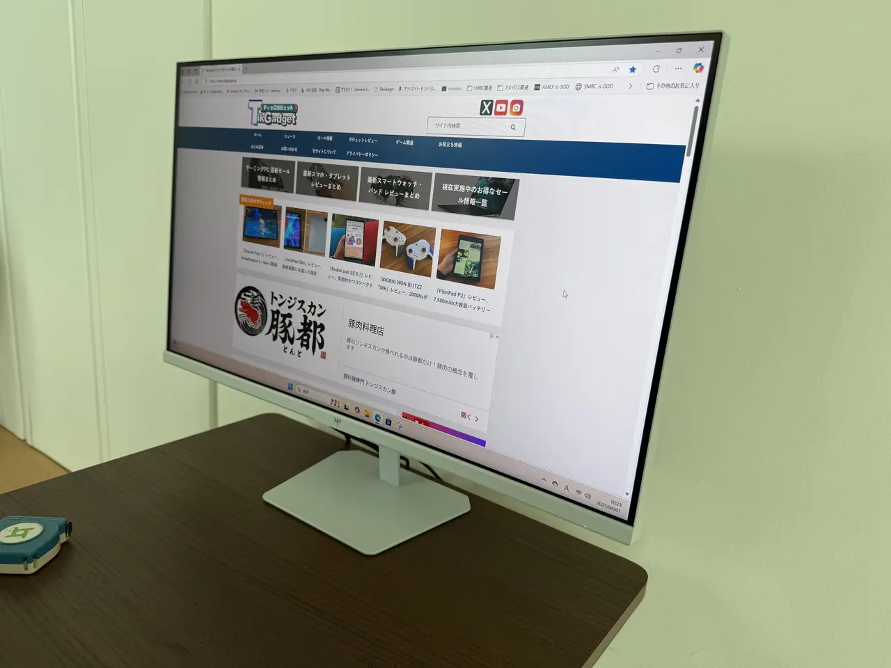 FHD解像度により、ウェブサイト閲覧時でも細かな文字まで鮮明に描画される。sRGB133%の高い色域カバー率に対応しているおかげで、深みのある色鮮やかな映像を楽しむことができた。非光沢VAパネルを採用しているため、画面への映り込みも気にならず、目が疲れづらい。