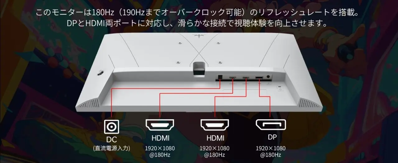 | 信号入出力 | ・HDMI×2(1920×1080@180Hz) ・DP×1(1920×1080@180Hz) |