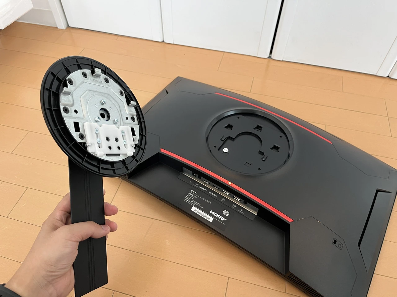 最後に、付属のドライバーとネジを用いてスタンド下部から固定すれば、組み立ては完了だ。