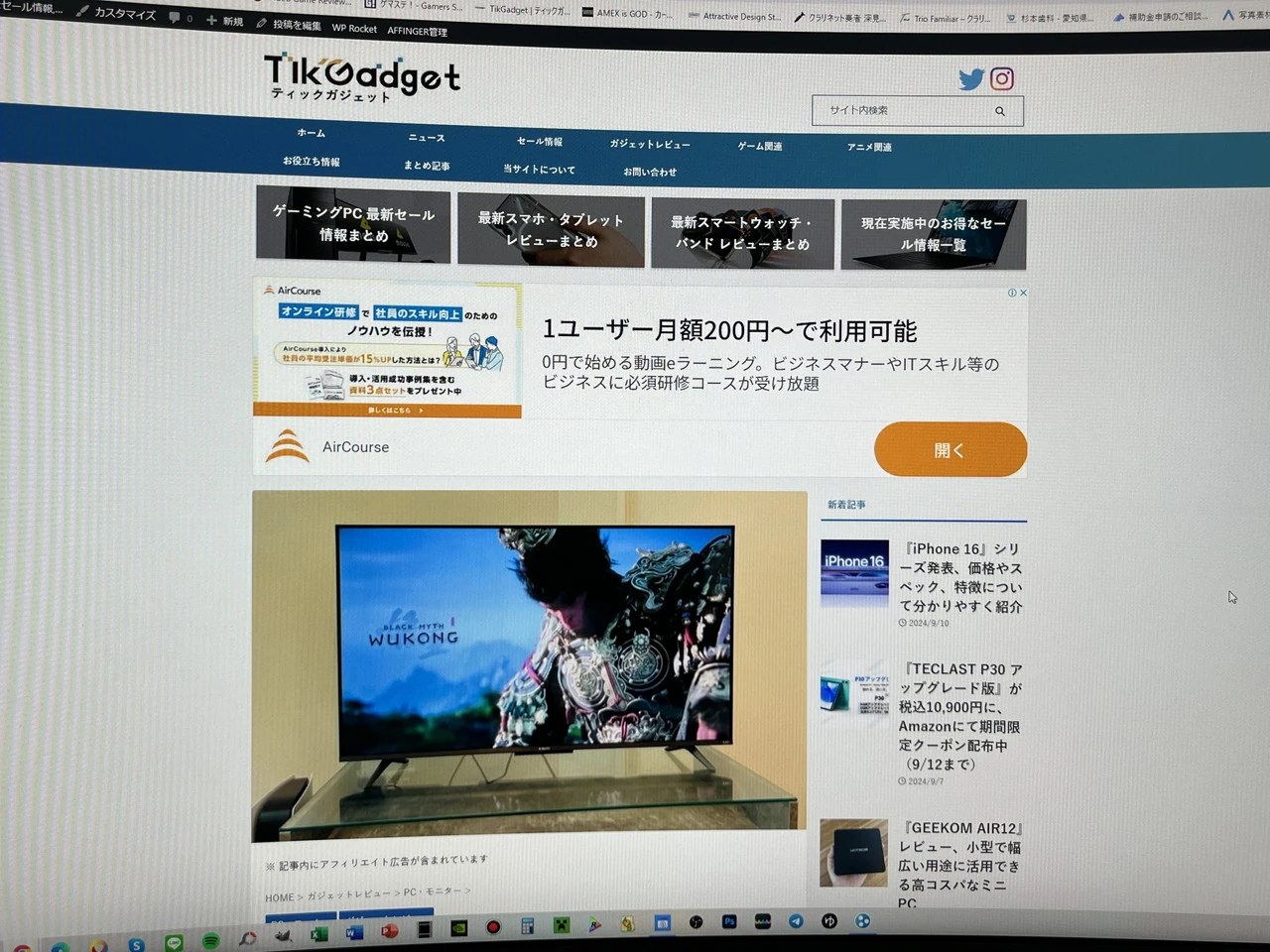 2560x1440(WQHD)解像度により、ウェブサイト閲覧時でも細かな文字まで鮮明に描画される。132% sRGBの高い色域カバー率に対応しているおかげで、深みのある色鮮やかな映像を楽しむことができた。非光沢VAパネルを採用しているため、画面への映り込みも気にならず、目が疲れづらい。