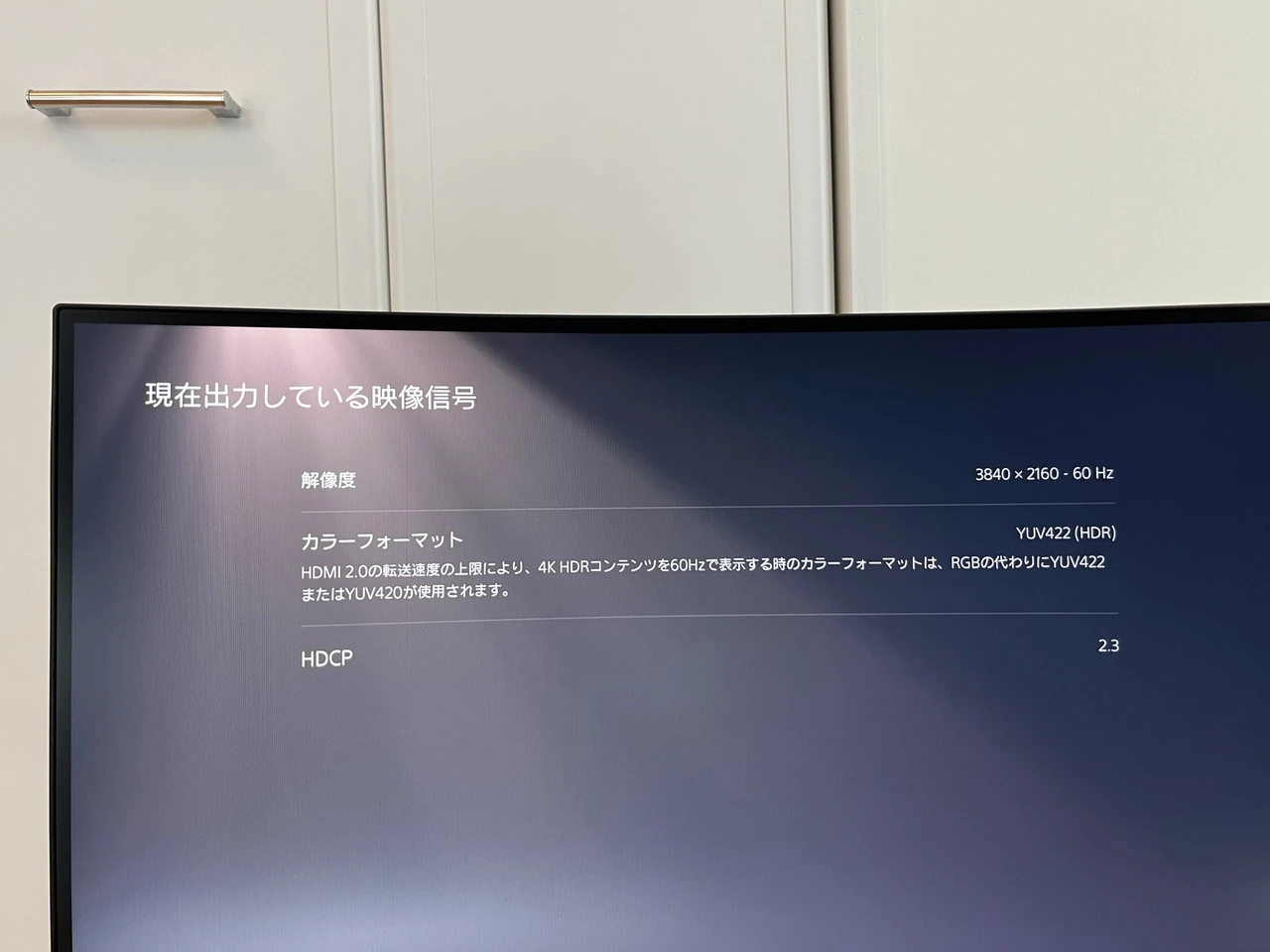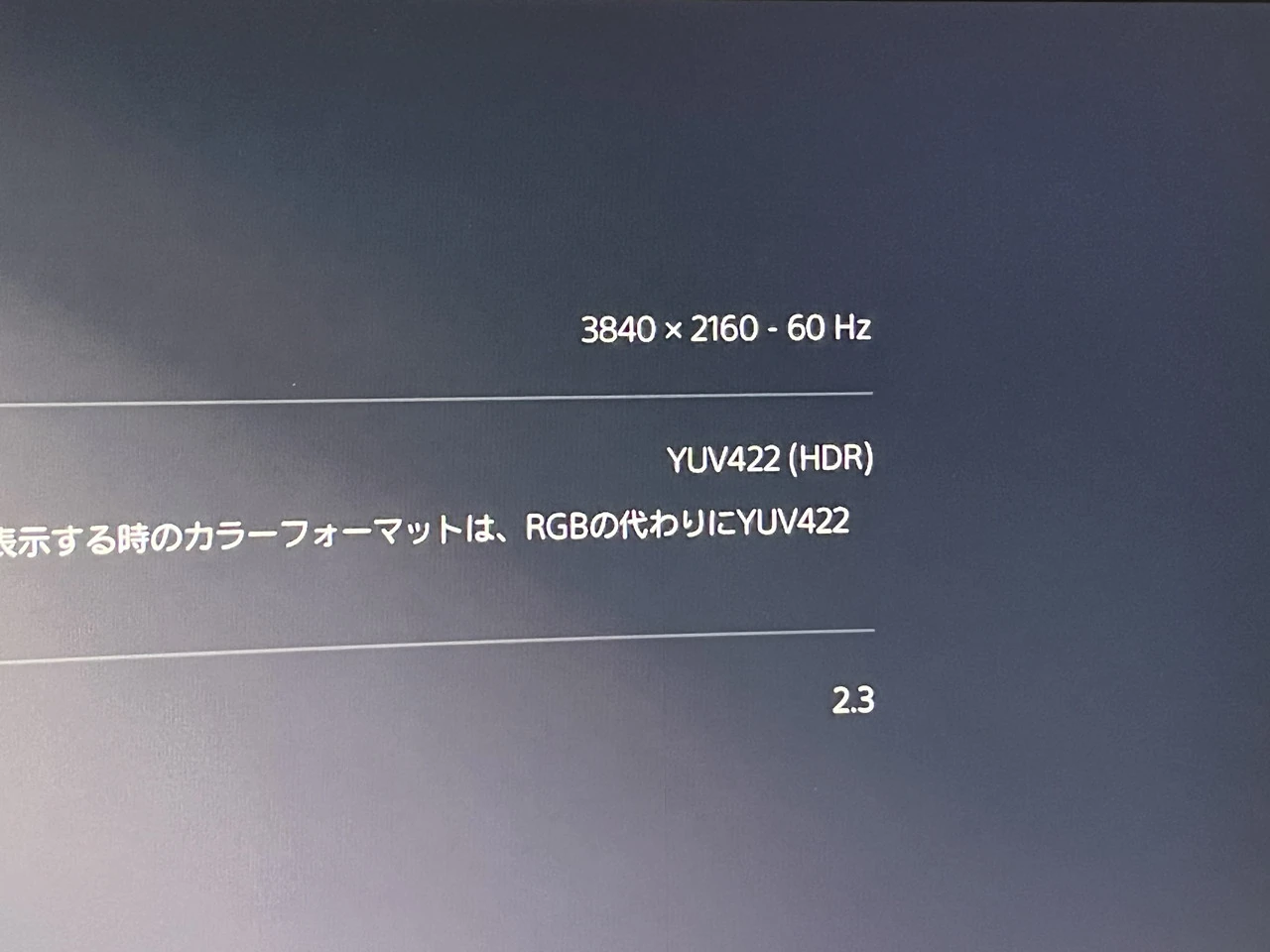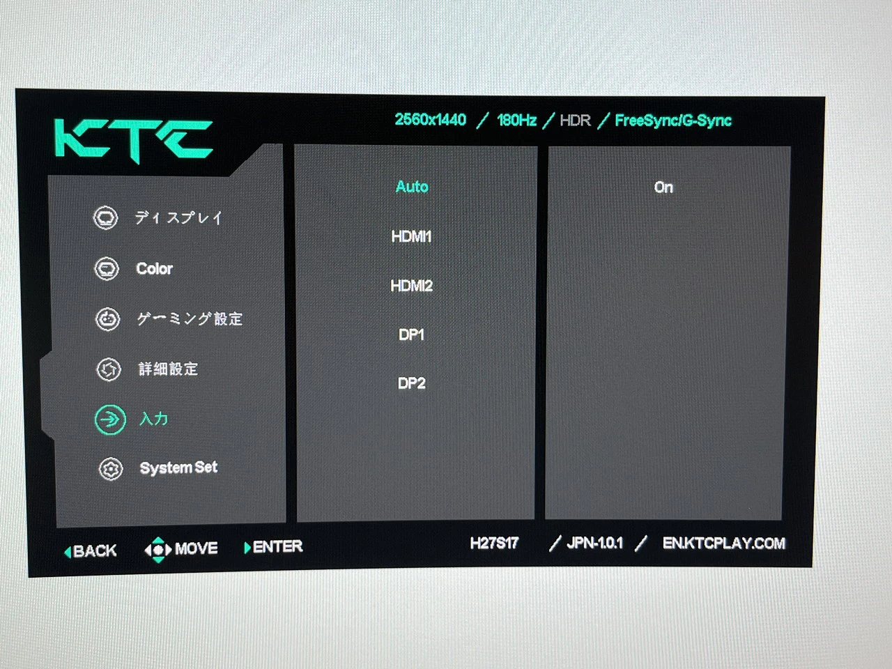 PS5接続時には4K(3840x2160)解像度出力と表示されるが、実際にはKTC H27S17のネイティブ解像度2560x1440にダウンスケーリングされて描画される。