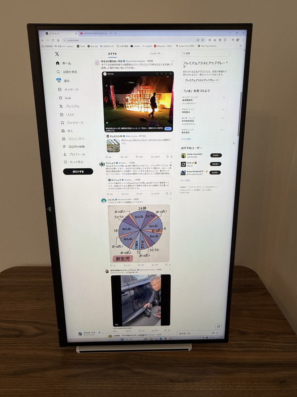 優れた可動域を備えており、縦向き設置も可能。仕事やクリエイティブな作業用としても重宝するだろう。