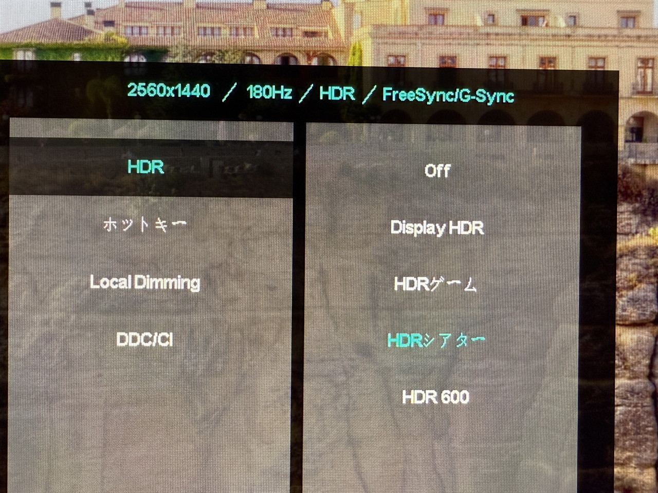 2560×1440解像度、180Hzリフレッシュレート対応の27インチ型モニターであり、HDR1400や1msの応答速度を誇るなど、本格的なゲーミングにはうってつけのモデルだ。