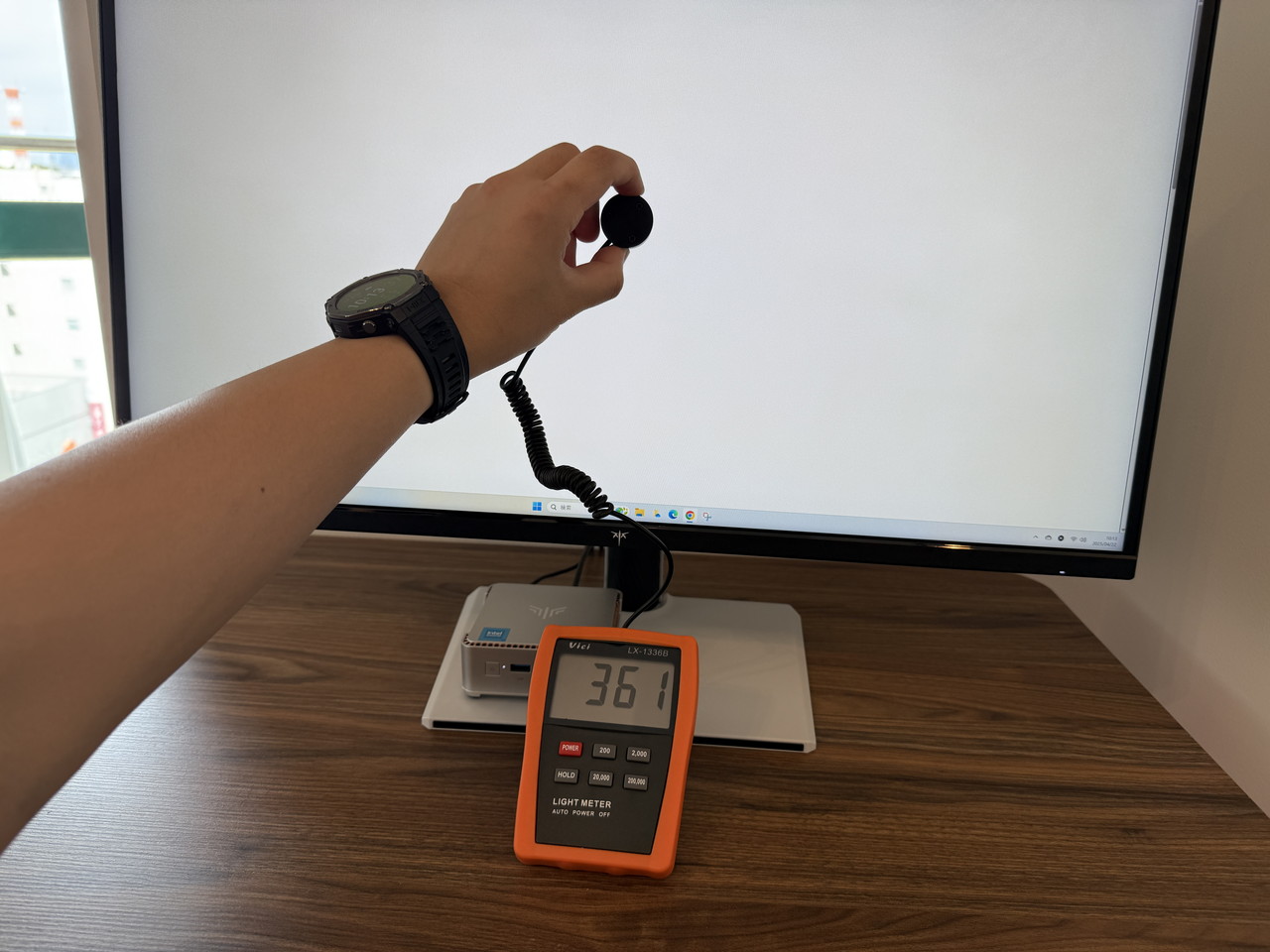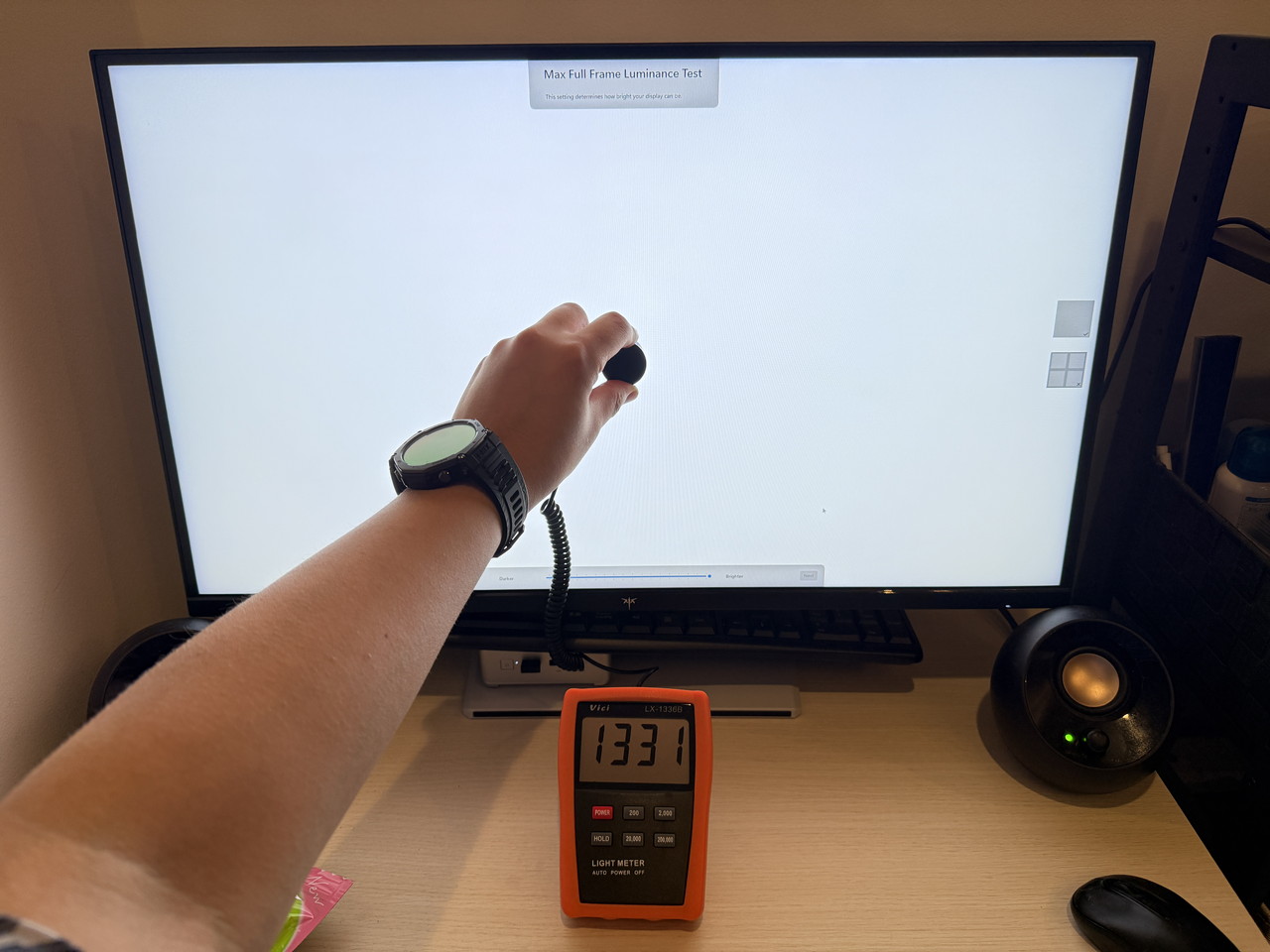 そこで、実際にデジタルルクスメーター「Vici LX1336B」を使用して、HDR設定時の画面輝度について確認してみた。