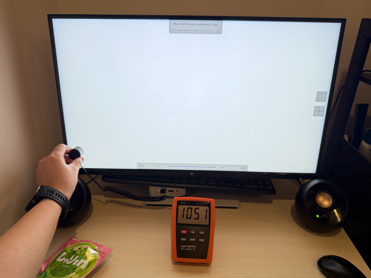 端部も1,000nitsを超えており、エリア間での急激な輝度落ちは少ない。輝度分布の安定性も良好で、HDR映像・ゲーム・コンテンツ制作など、高輝度を活かしたシーンで真価を発揮するモニターと言える。
