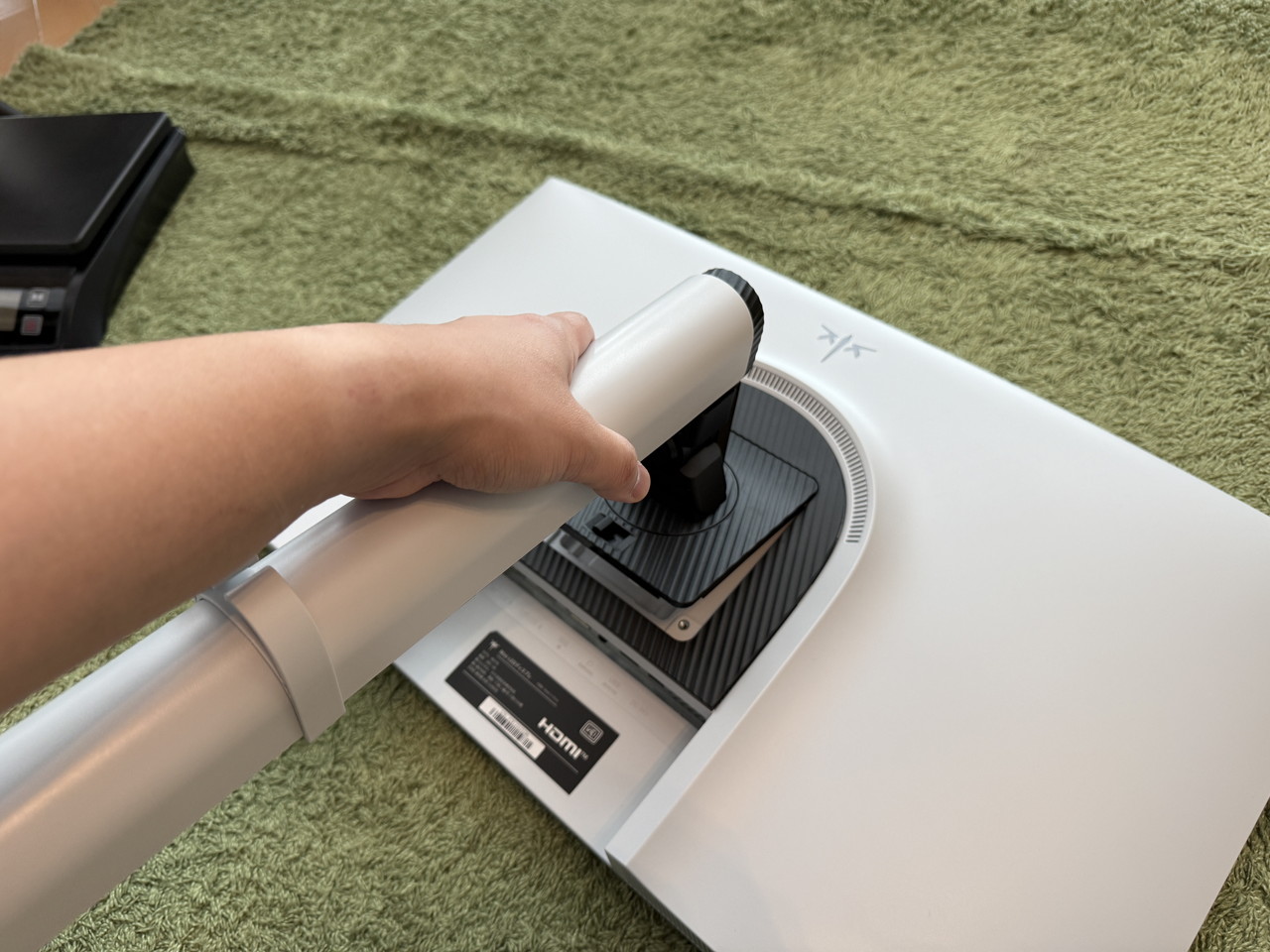続いて、スタンド下部にベースを挿入して取り付ける。