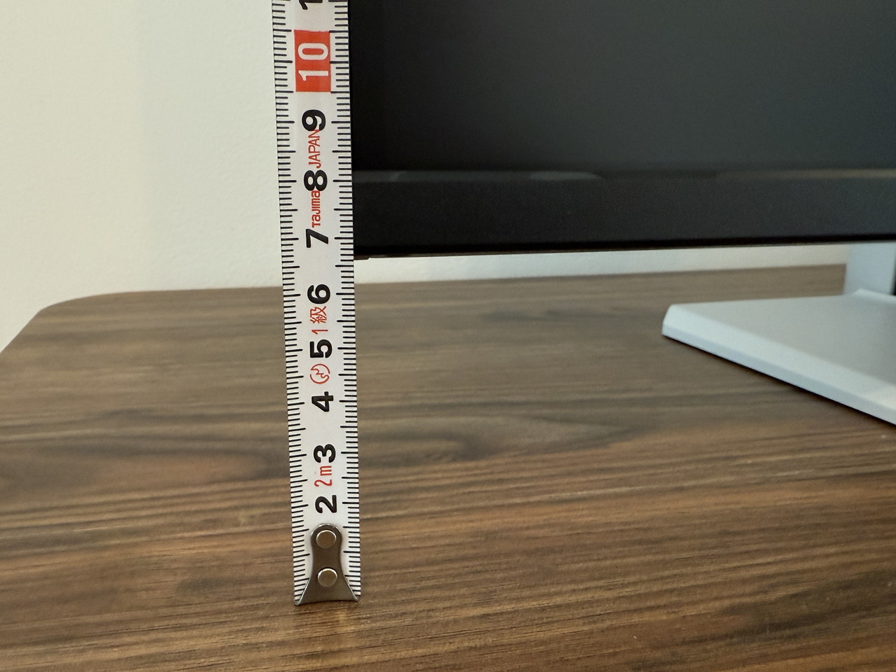 ▼一番低く下げた状態で設置面から約6.7cmの高さ。