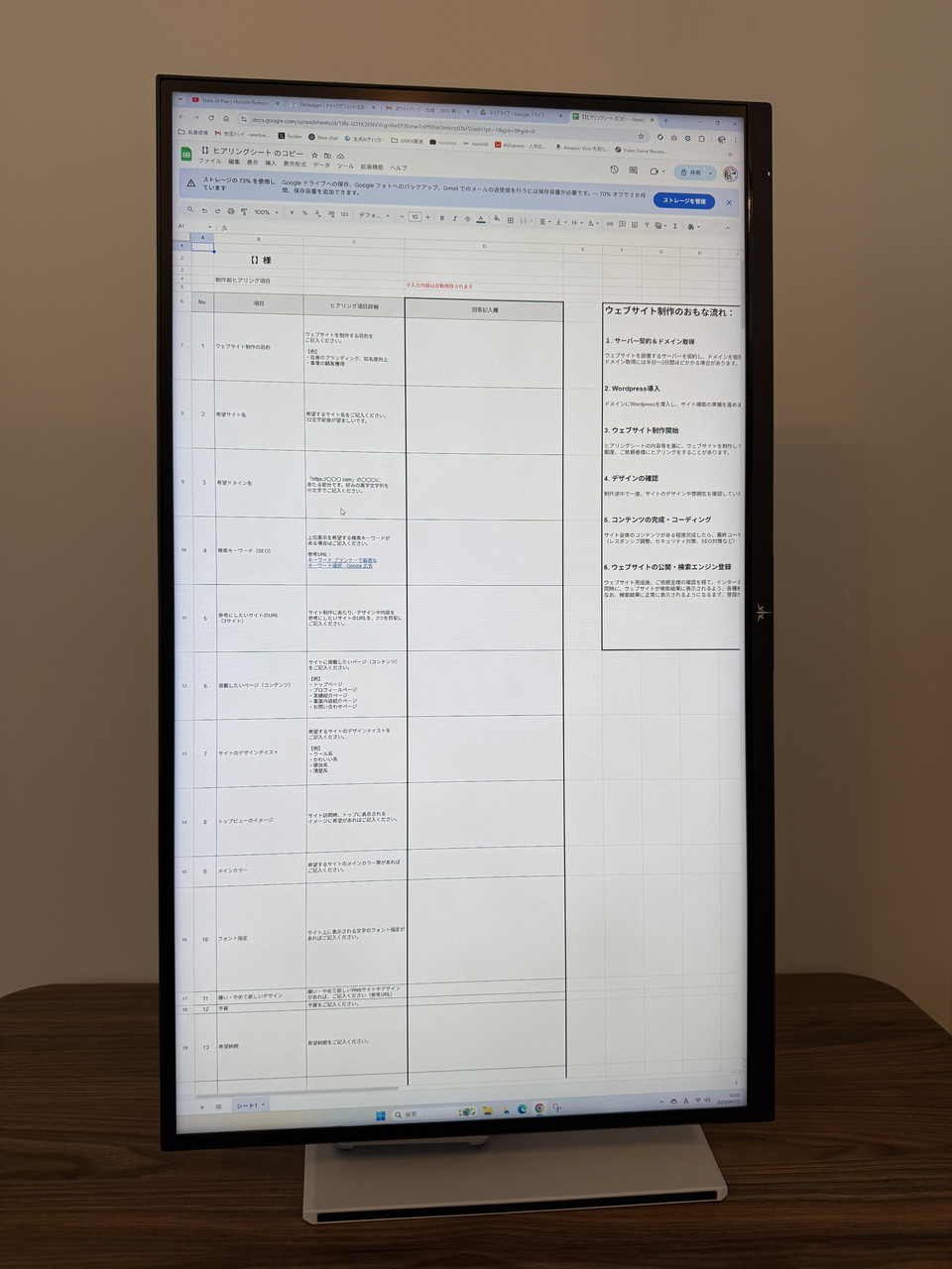 2560×1440(WQHD)解像度により、ウェブサイト閲覧時でも細かな文字まで鮮明に描画される。非光沢パネルを採用しているため、画面への映り込みも気にならず、目が疲れづらい。