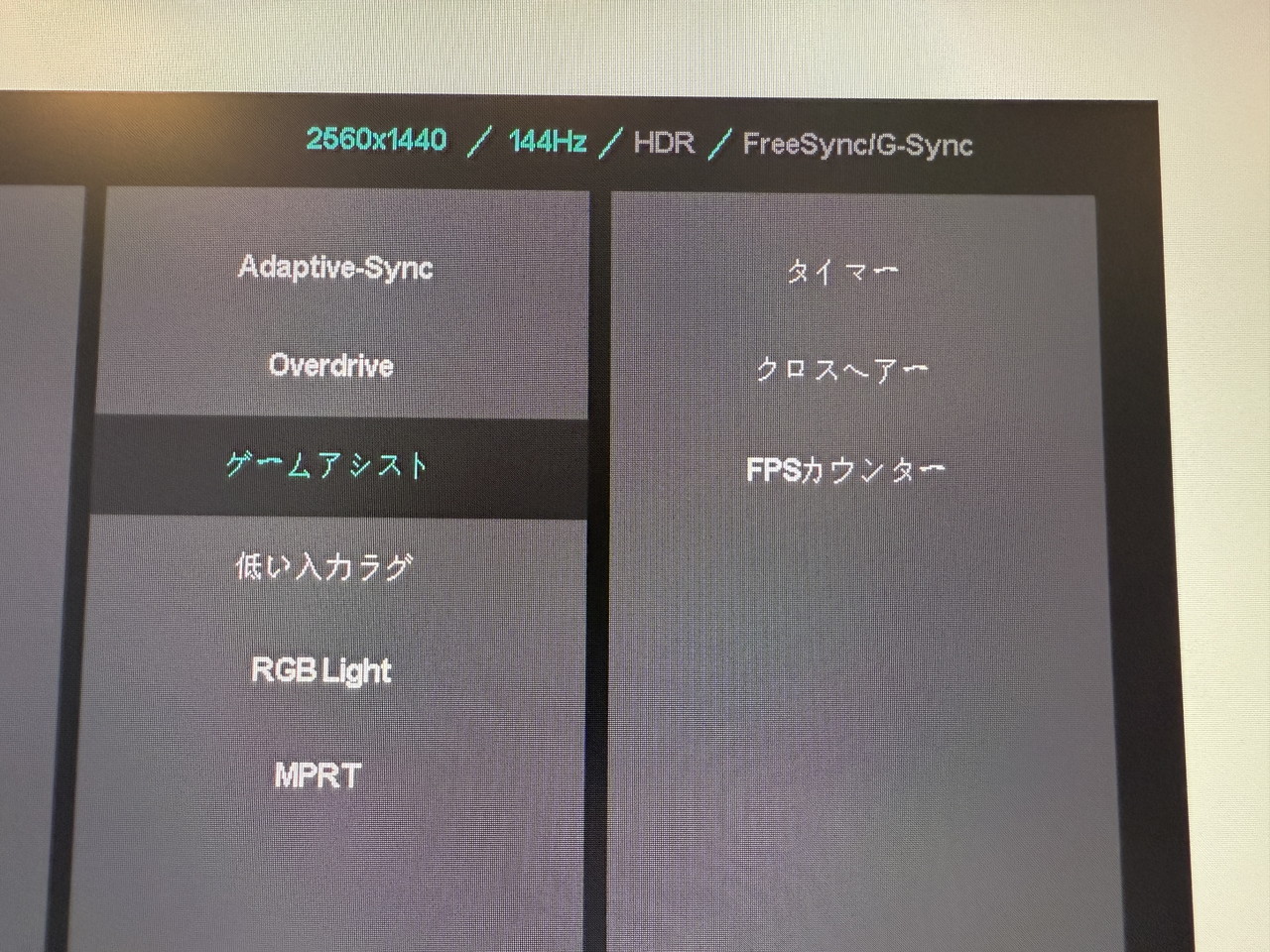 オプション画面では、明るさやコントラストと言った一般的な設定から、ゲーミング用の機能まで、豊富な項目が用意されている。