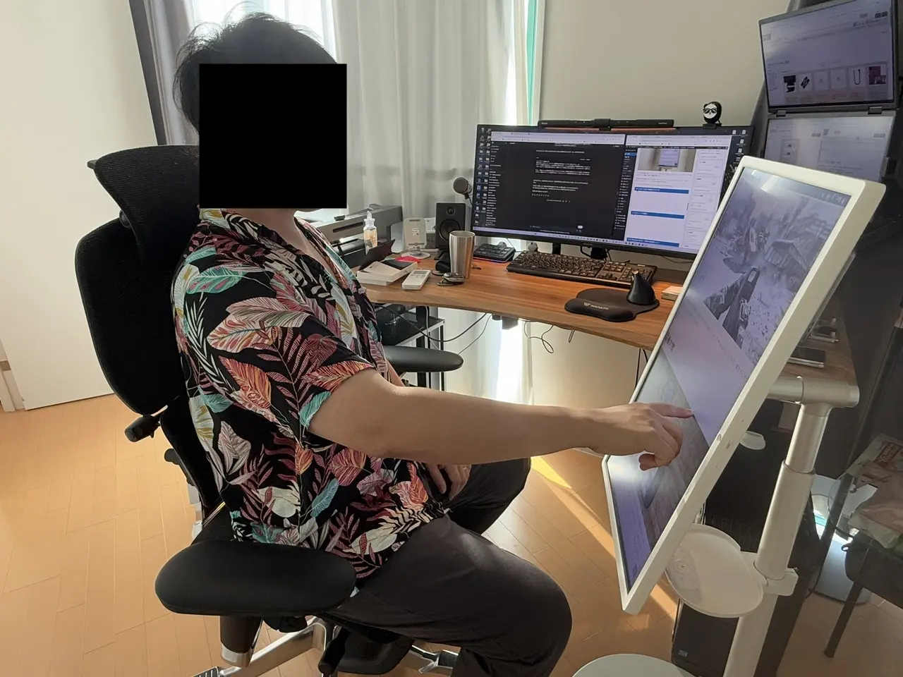 メインPCで作業しつつ、横に設置したMegPad A27Q7でニュースや資料の画面を表示しておけるので、作業効率がぐっと向上しました。直感的なタッチ操作に対応している点もGOOD。