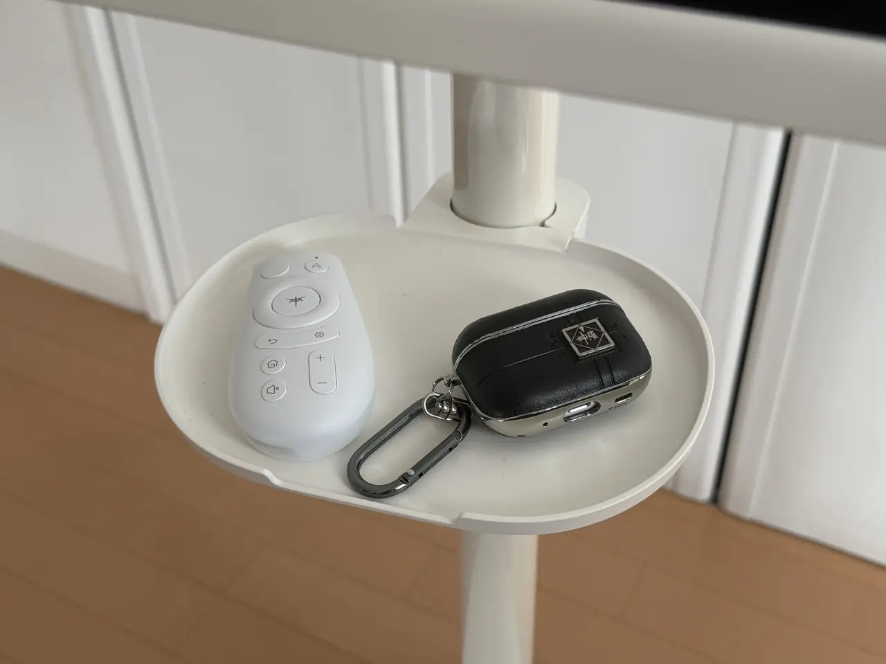 リモコンや、小物を置くのに役立つカバーが付属。吊り棒に取り付けられます。