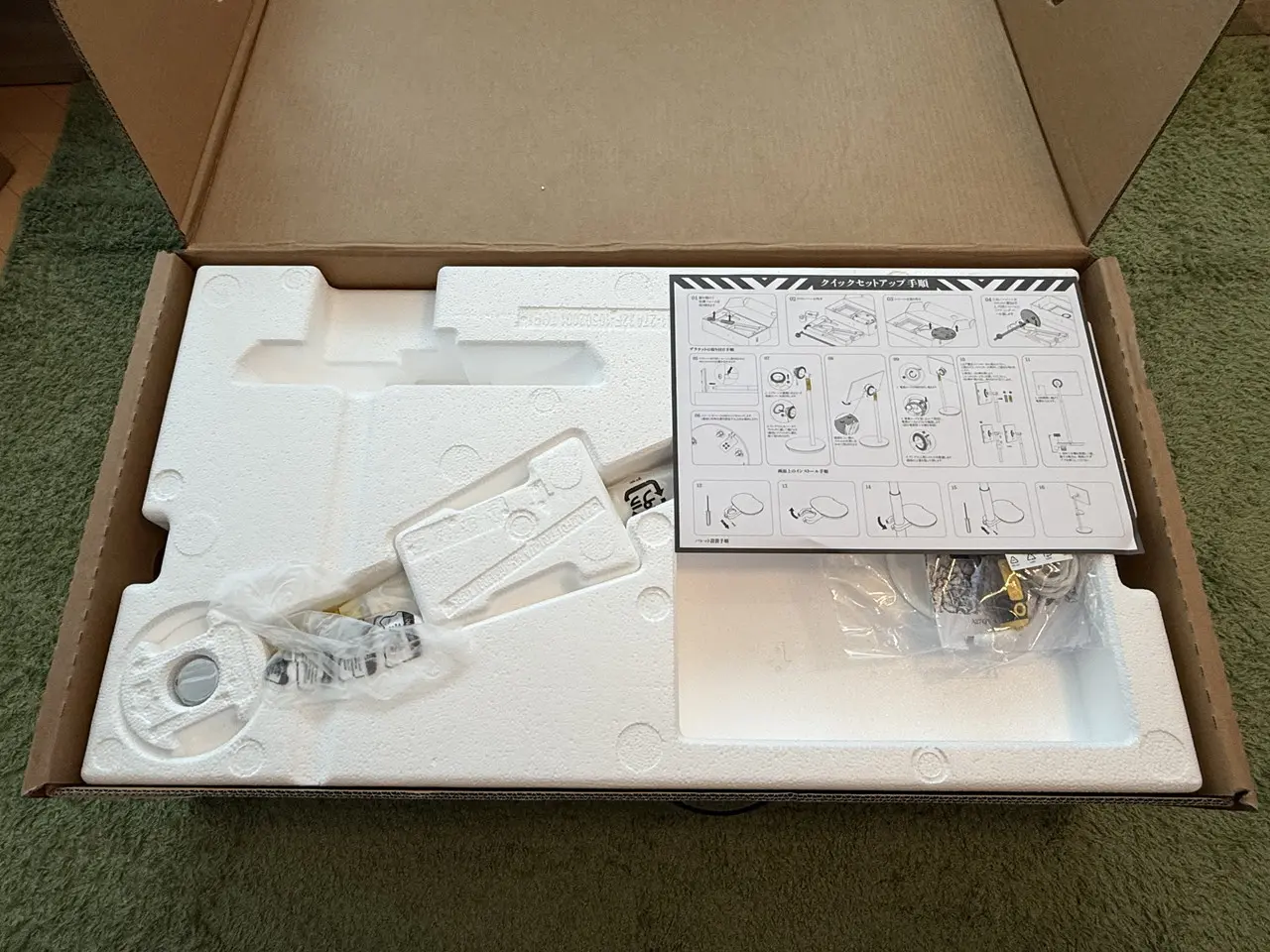 ※付属パーツを保護している発泡スチロールは、組み立て時に利用できるので、開封してすぐに廃棄してしまわないよう注意してください。