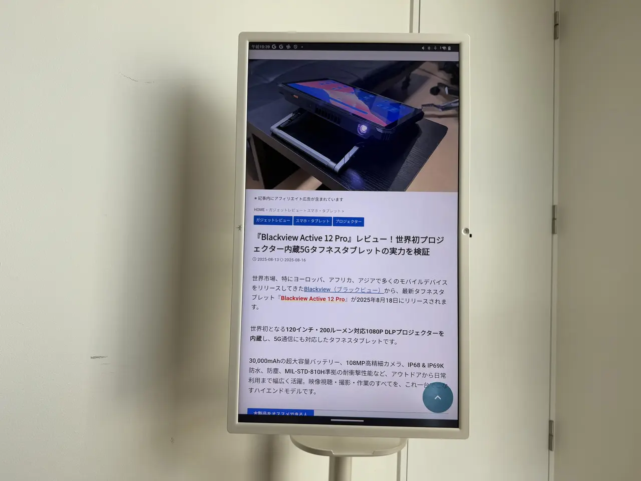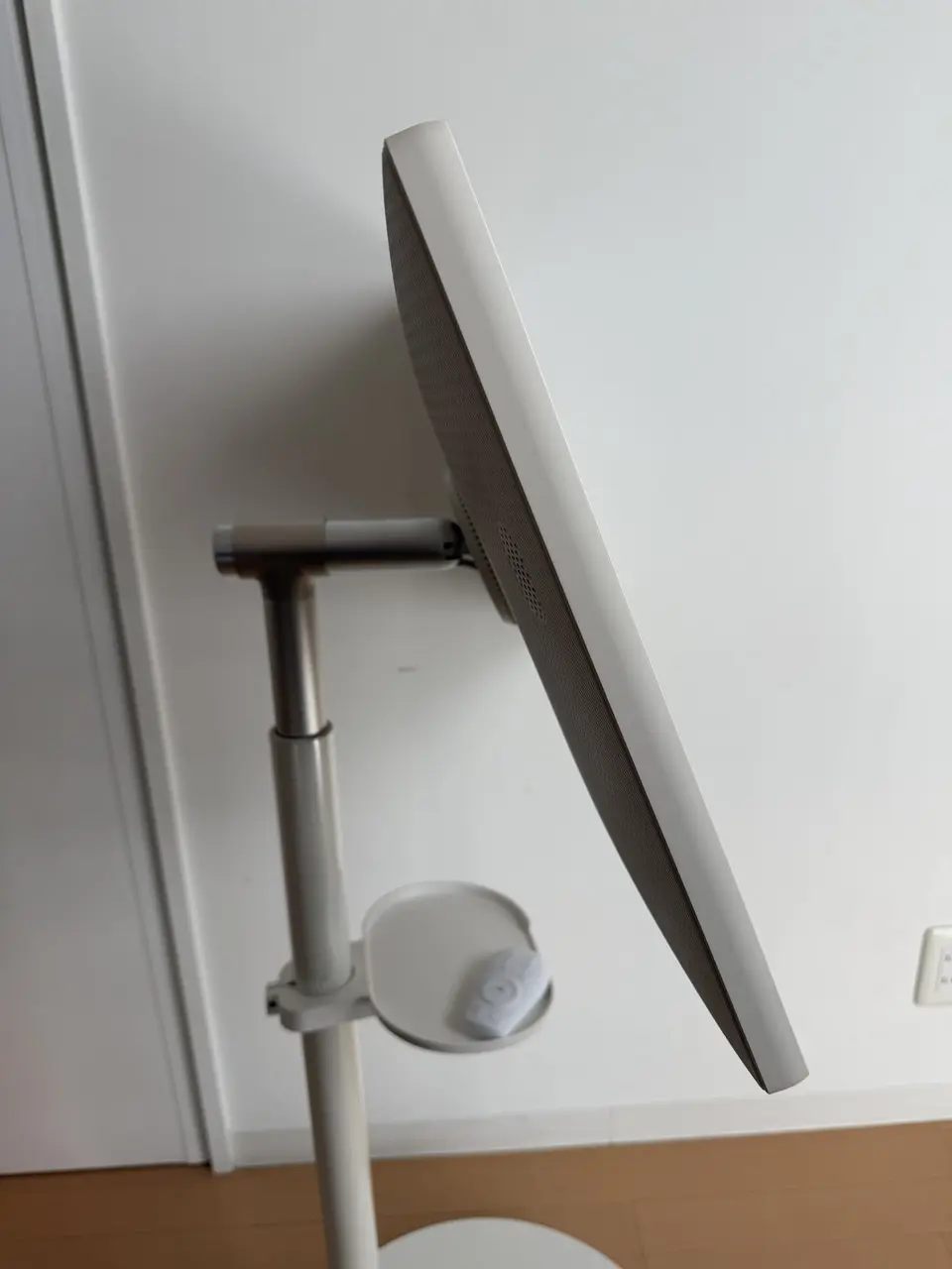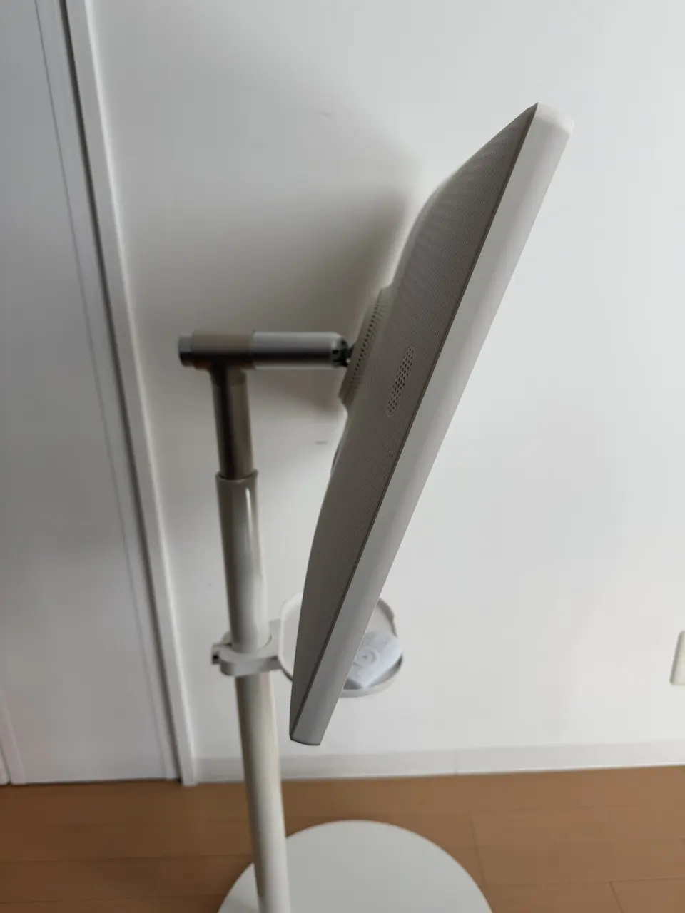 27インチの大きめの画面で動画や資料を快適に表示できるうえ、キャスター付きで移動もラクラク。キッチンやリビング、書斎など、シーンに合わせて気軽に使えるのは非常に便利だと感じました。