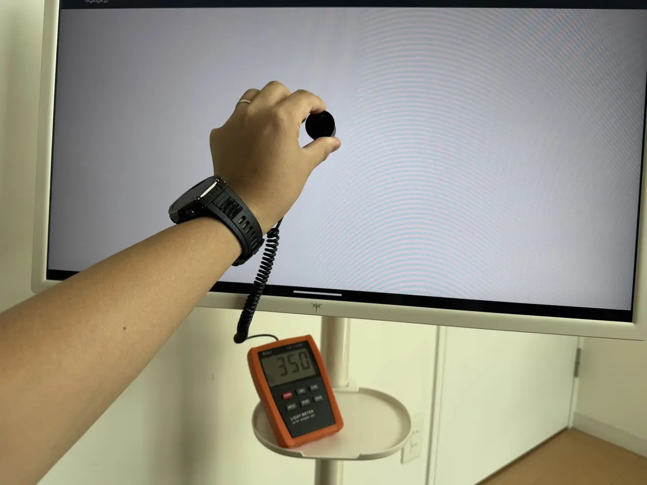 そして、デジタルルクスメーター「Vici LX1336B」を使用して画面の明るさを計測したところ、最高350nit前後の明るさを得られました。