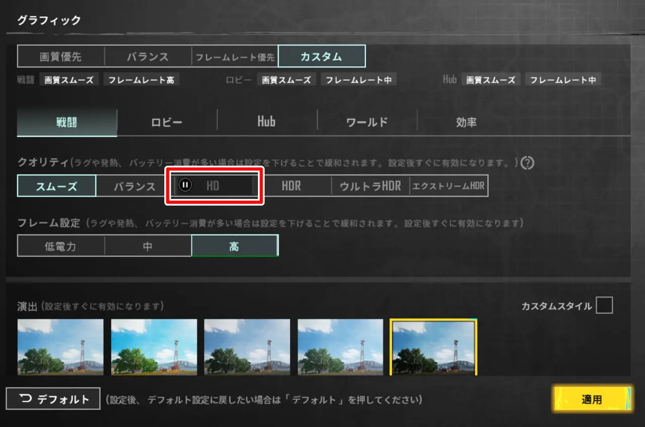 ▼PUBGの場合、画質は「HD」まで選択可能。