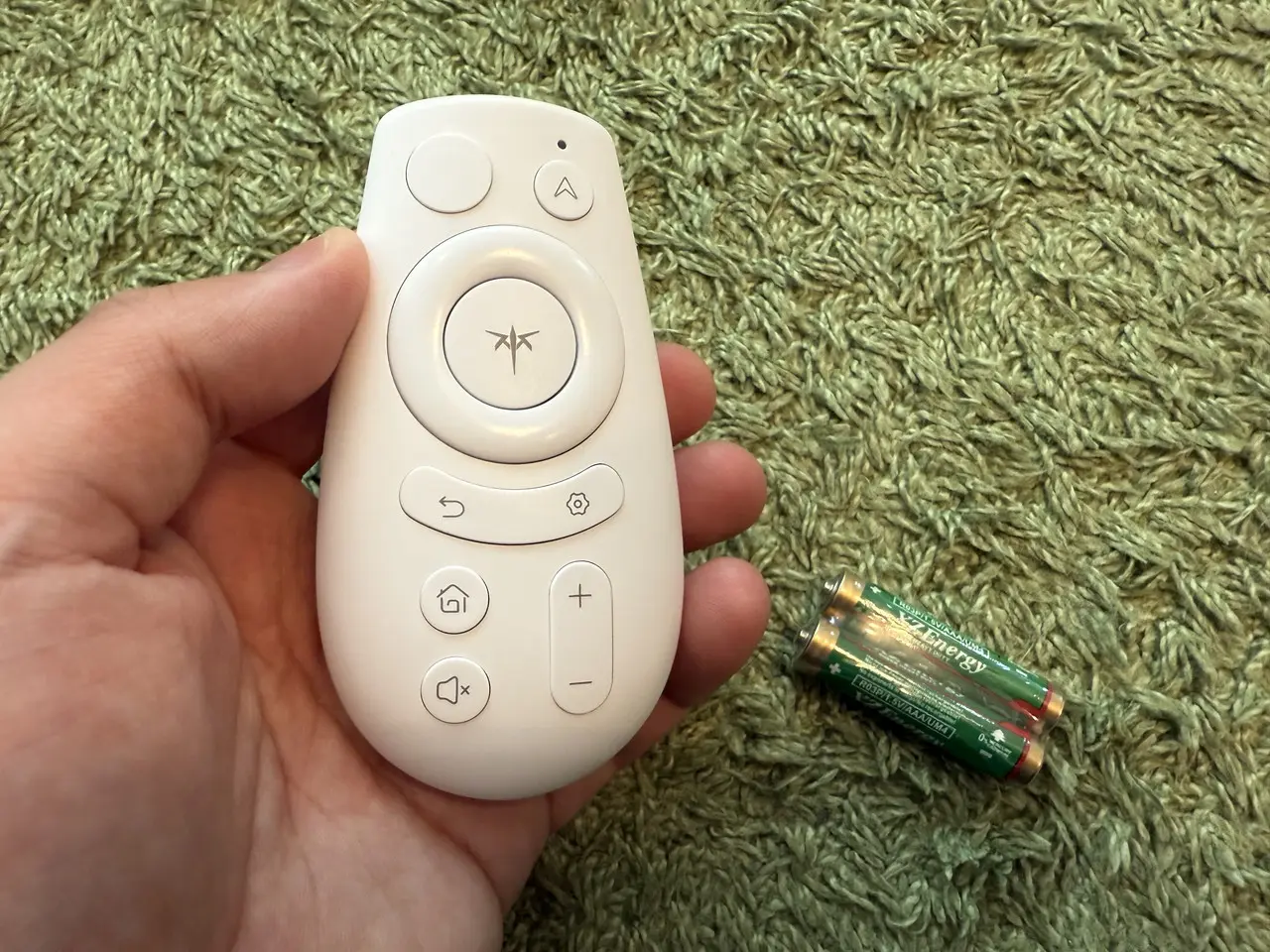リモコンと乾電池が付属。ディスプレイを直接タッチしなくても、遠隔操作できます。