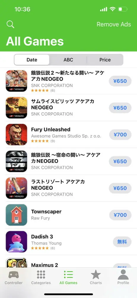 ▼コントローラー対応ゲームアプリが一覧で表示される。