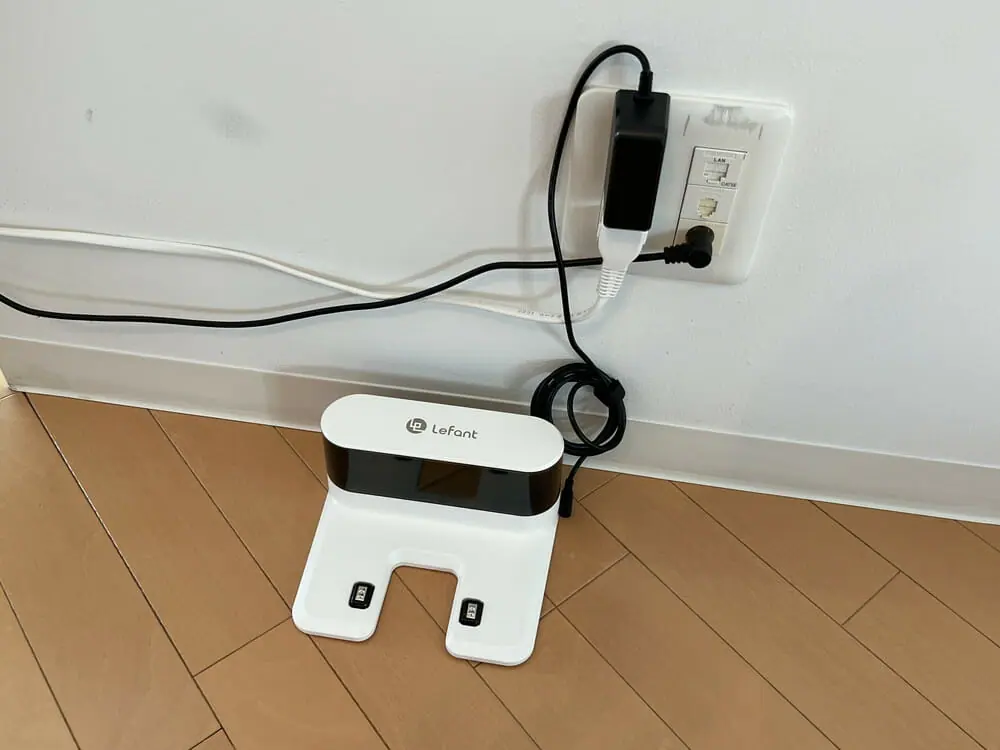 マッピング・清掃が完了したロボット掃除機は、自動的にベースへと帰還する。ベース待機時は常に給電が行われているため、いちいち電源を切る必要はない。