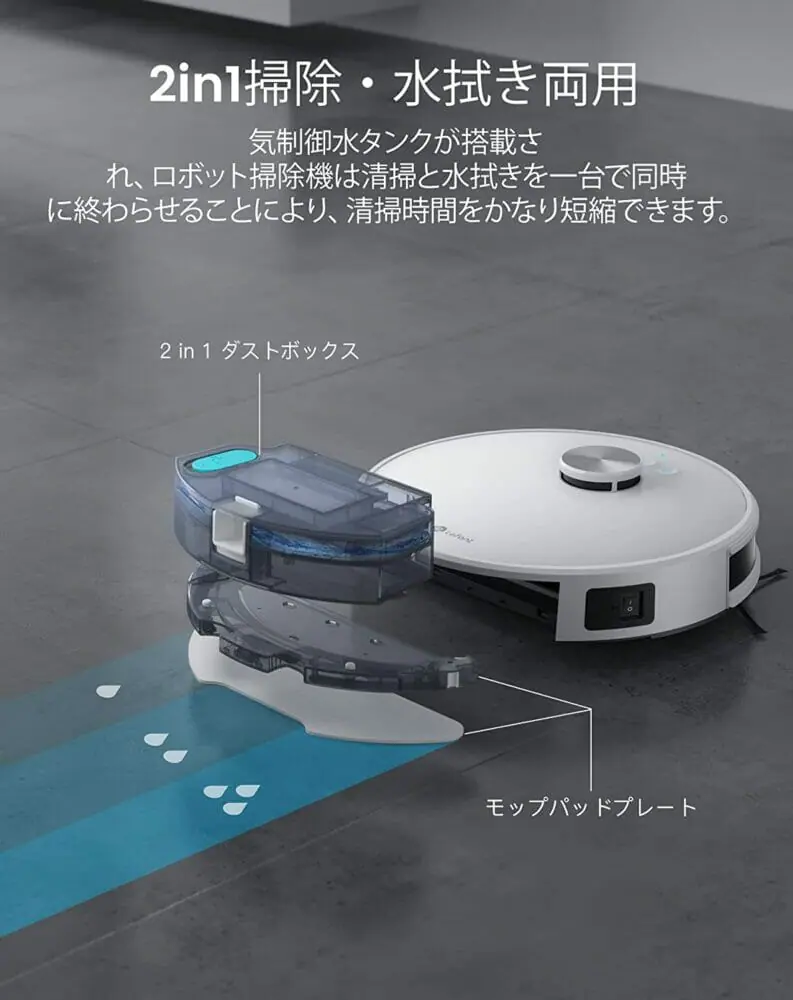 上述した通り、本製品はロボット掃除機に水拭きをさせることも可能だ。