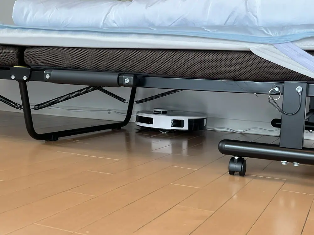 ▼ベッドの下など、ホコリの溜まりやすい場所もスイスイと掃除してくれる。