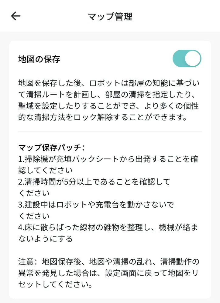 ▼マップ管理内の「地図の保存」は事前にONにしておくと良いだろう。