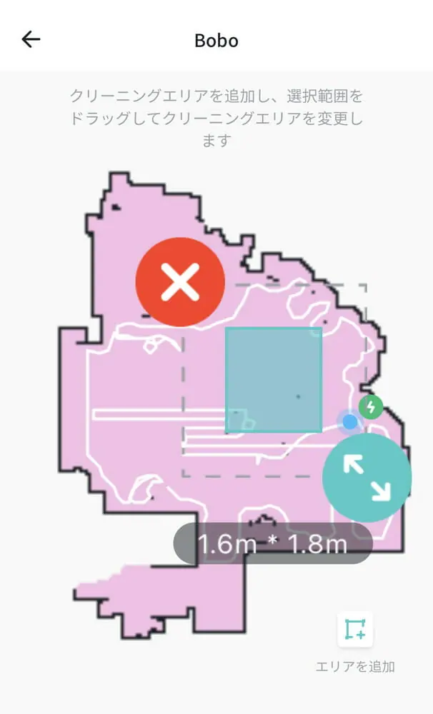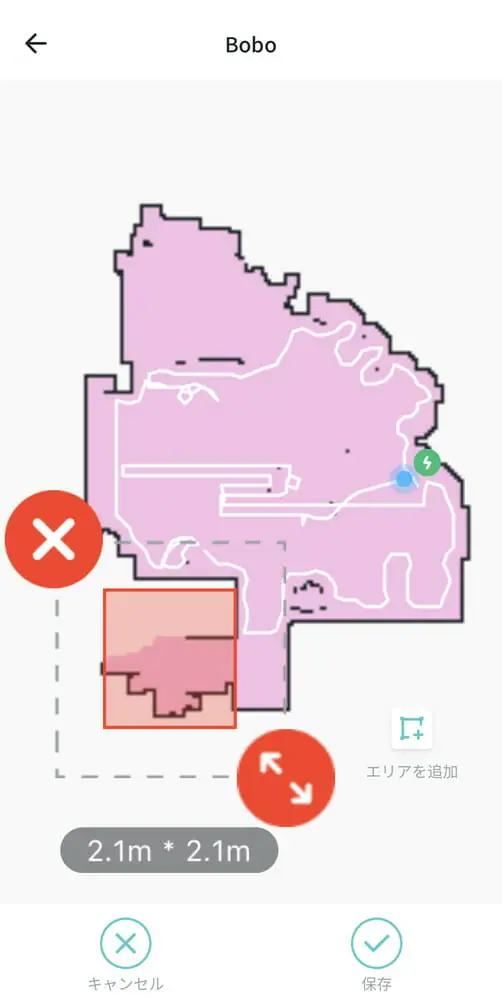 作成したマップを元に、ロボット掃除機に立ち入り禁止区域を指定することも出来る。