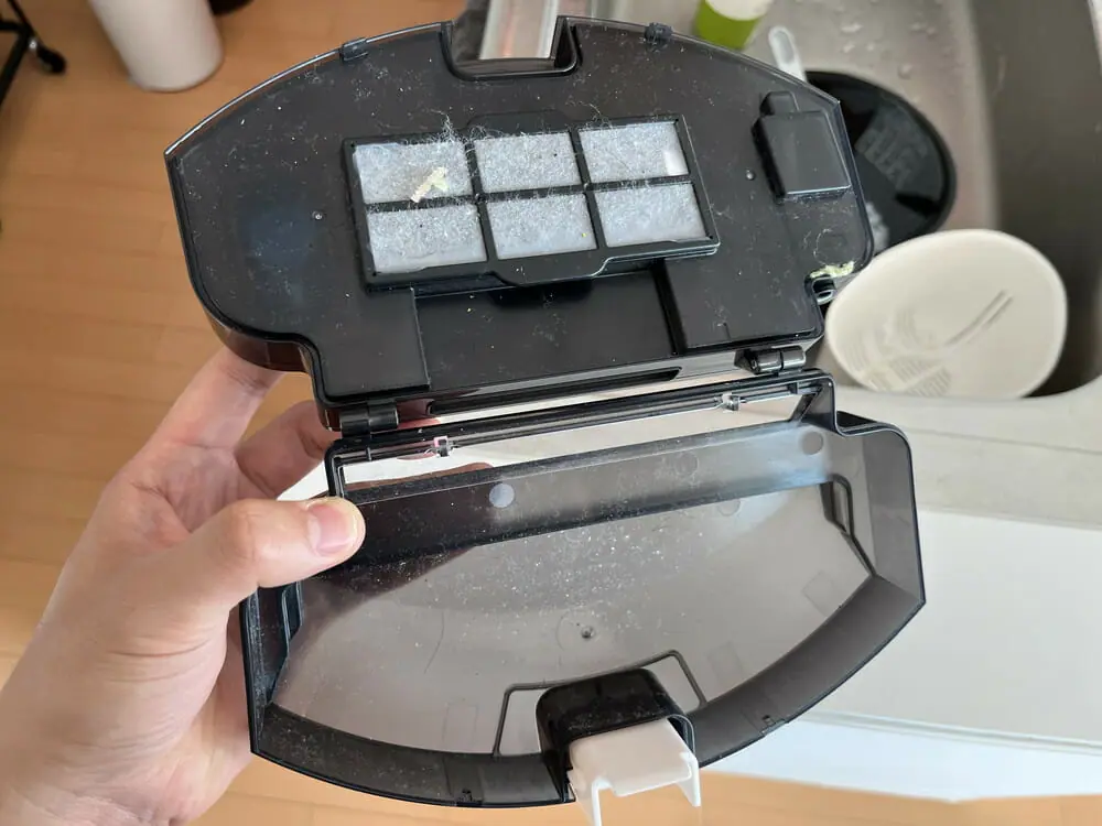 ▼ダストボックスはフィルターを簡単に分離できるため、掃除が簡単だ。