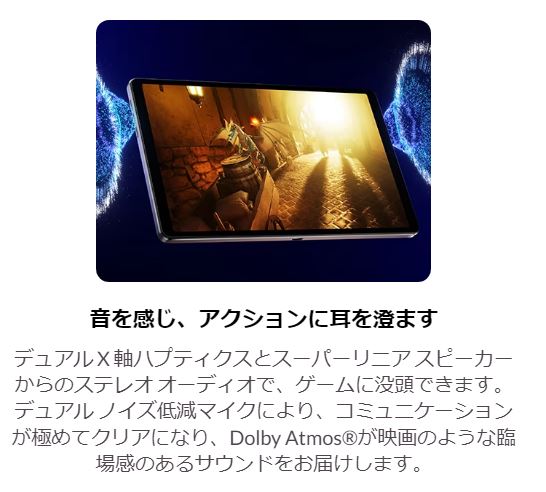 | スピーカー | デュアルスピーカー内蔵(Dolby Atmos対応) |