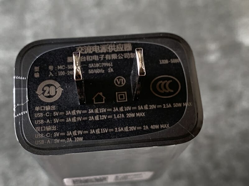 ▼付属の電源アダプタはType-A, Type-Cの両方に対応している。