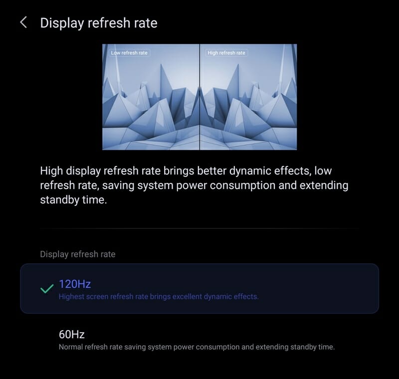 ▼リフレッシュレートは設定アプリより切り替えることが出来る。