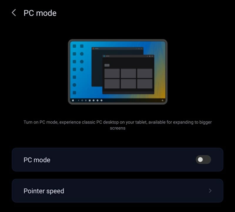 ▼Win OSと同様の操作が可能なPCモードも搭載している。