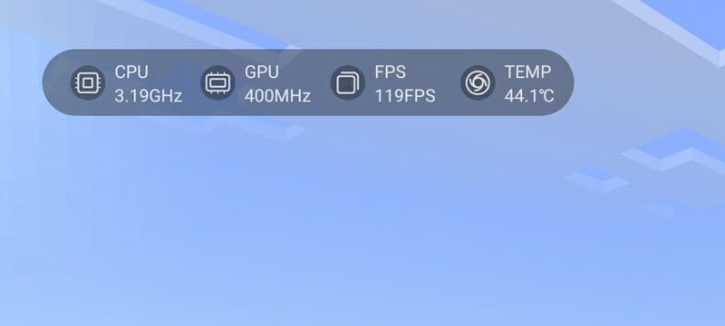 上述した通り、電源ボタン横に搭載されているゲームスイッチをONの状態に入れることで、ゲームアプリプレイ中、画面上にCPU使用率や温度、FPSなどの情報を表示することができる。