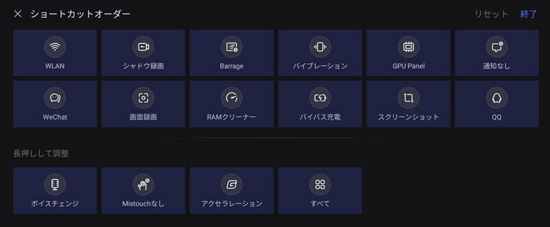 また、ゲームプレイ中に画面上部を下へスワイプすると、ゲーミングに関する各種ショートカット機能を表示することが可能だ。