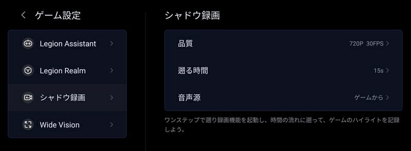 ▼現時点から時間を遡って録画データを保存できる "シャドウ録画" も用意。決定的瞬間を録画し忘れた場合にも安心だ。