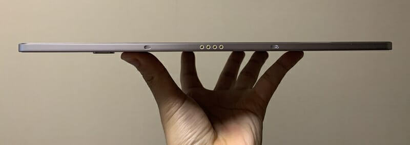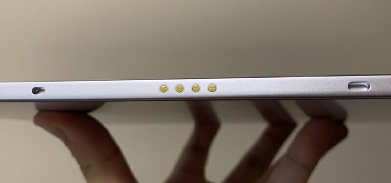 ▼反対側(左側面)には、専用のキーボードケースを接続するための端子が用意されている。