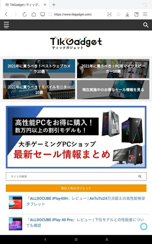 ウェブブラウジングは実に快適であり、画像が多めのサイトや、処理の重いサイトであっても スムーズに閲覧することが出来た。