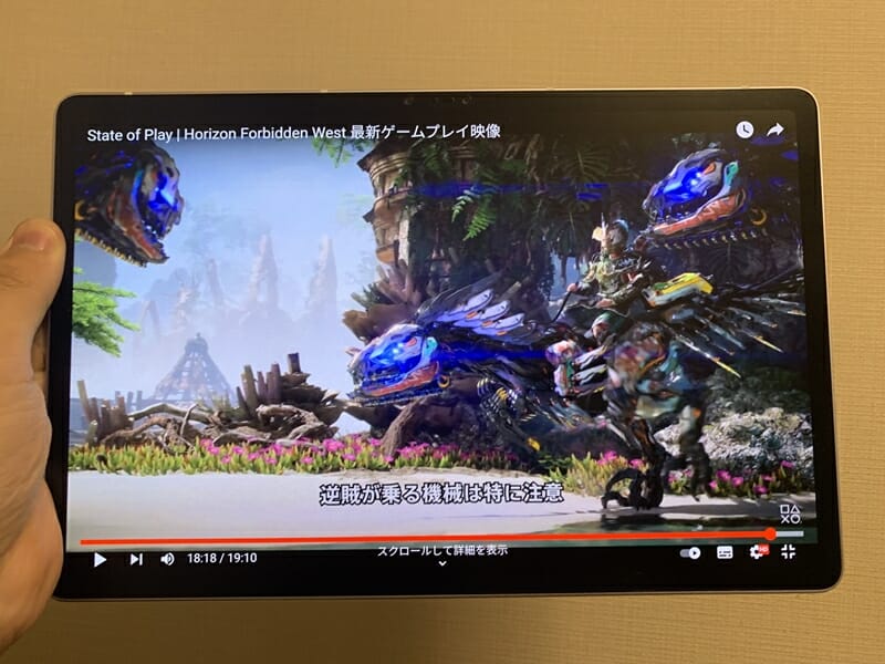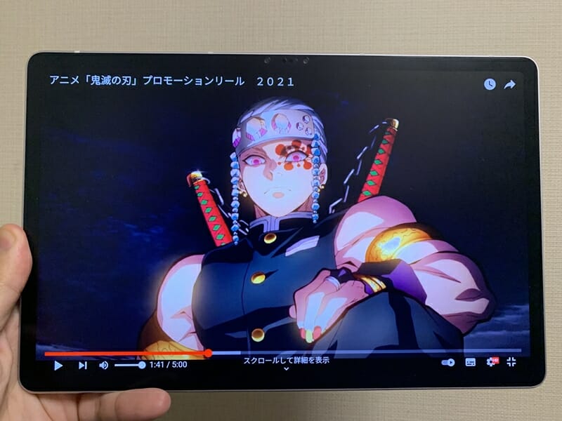 ▼ディスプレイの発色も良く、アニメなどの映像作品やゲームにおいても鮮やかな映像を楽しむことが可能。