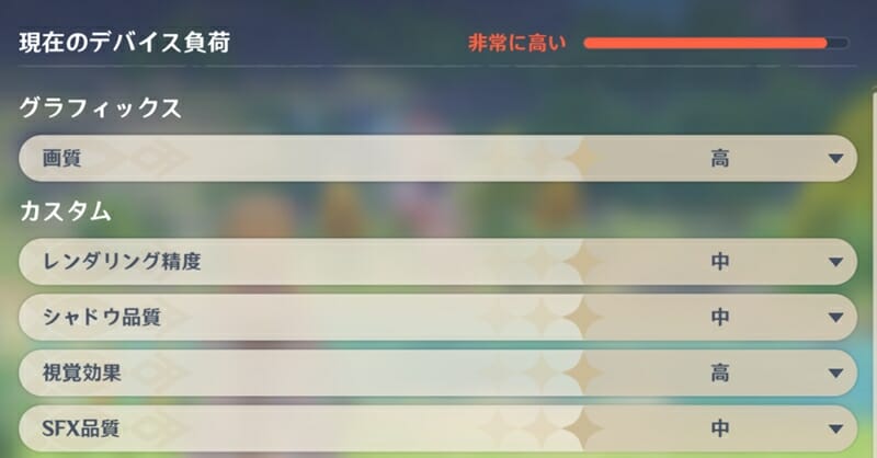 ▼画質設定を "高" に設定した場合、デバイス負荷は "非常に高い" となるが、ゲーム自体は問題なくスムーズに遊ぶことが可能であった。