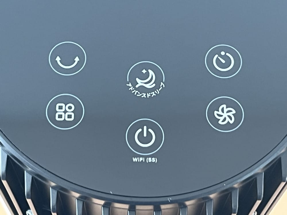 上部のファンモードボタンをタップすることで、稼働モードを4つ(標準モード、ターボモード、自動モード、アドバンスドスリープモード)の中で切り替えることができる。