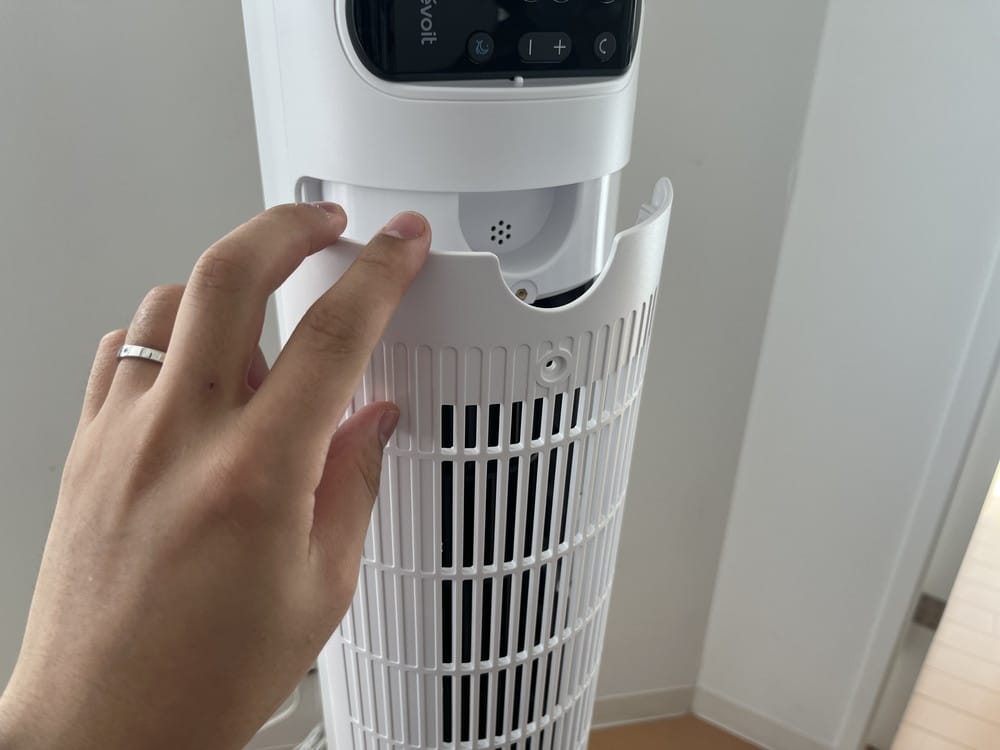 メンテナンス性にも優れており、ファンを外して丸洗いできる。従来型タワーファンの掃除しづらいといったデメリットを解消することができている。